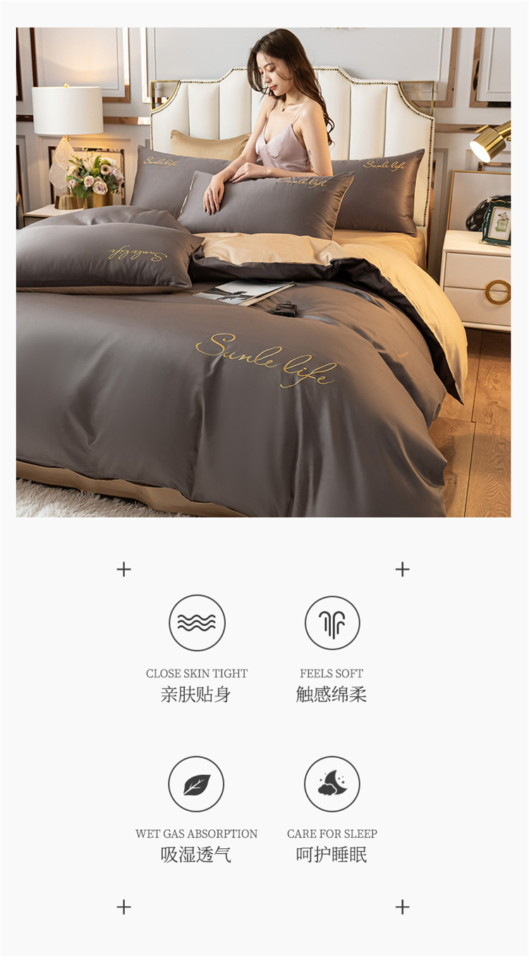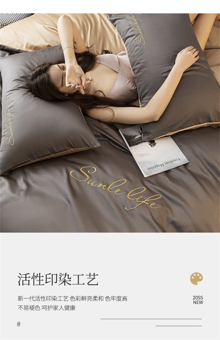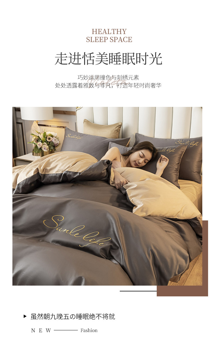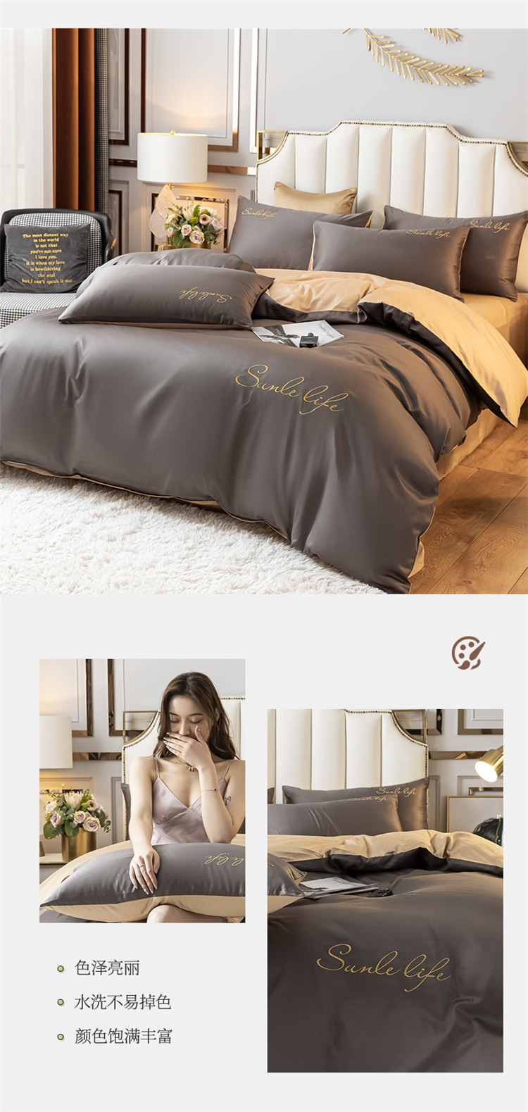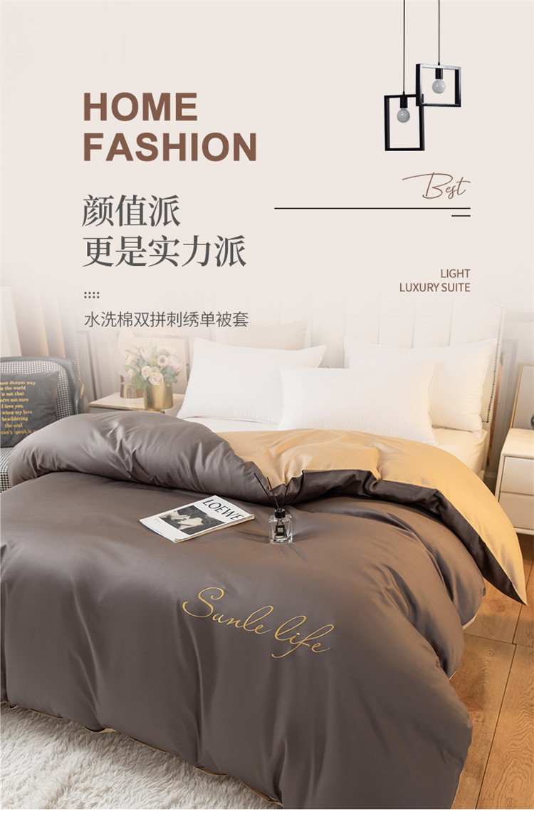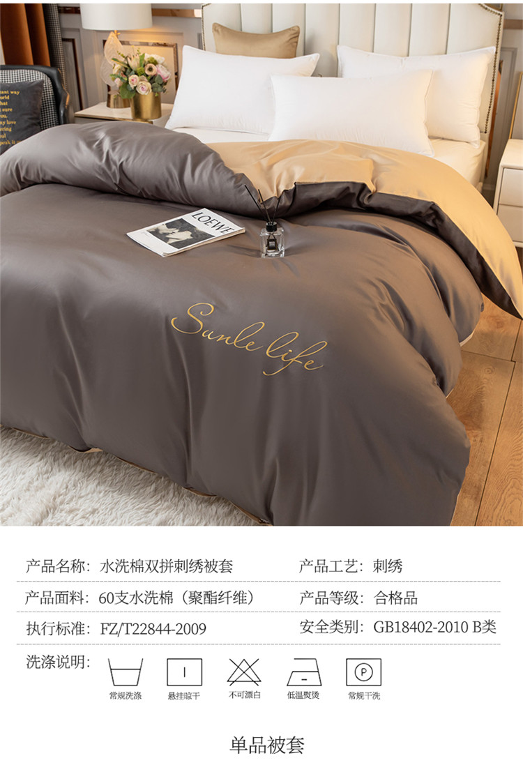 商品名称:古吉梦 2024新款水洗棉双拼刺绣单被套 双拼-高级灰