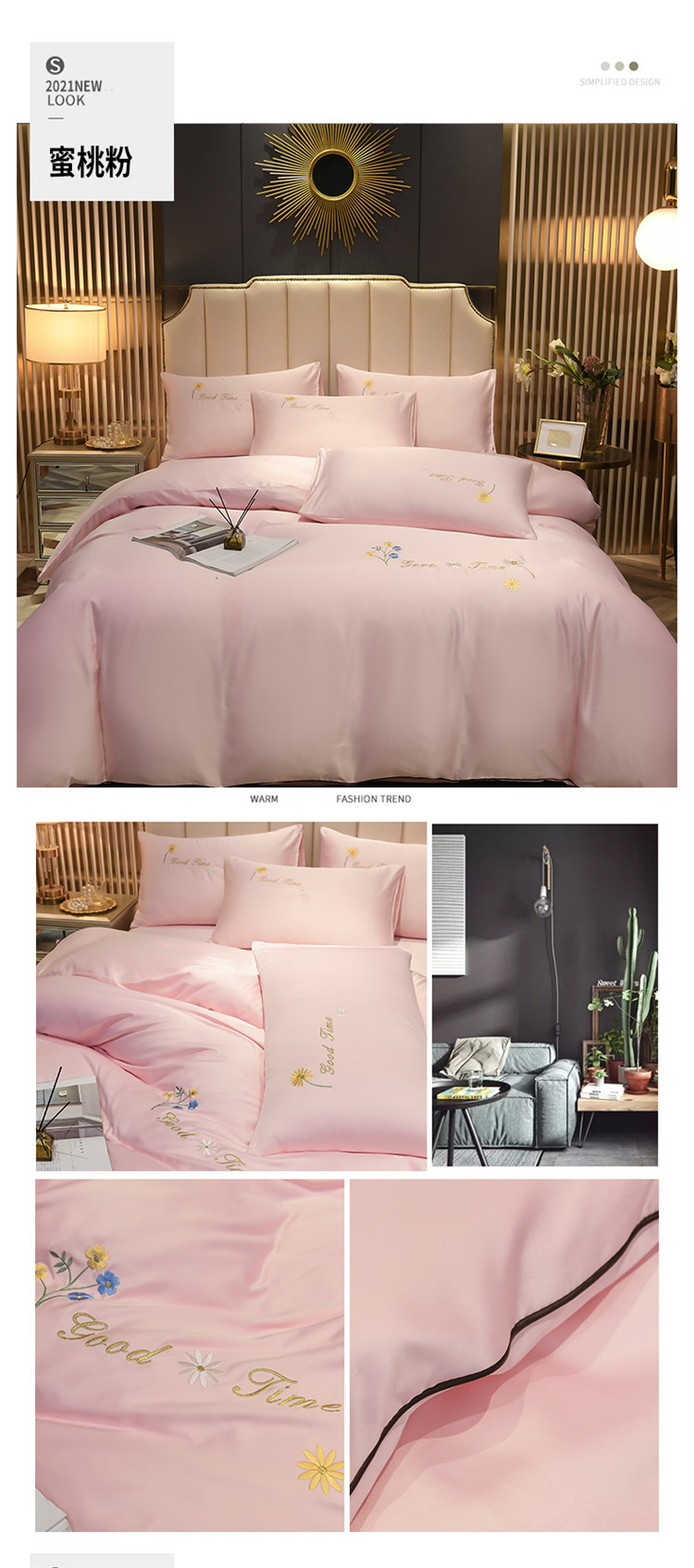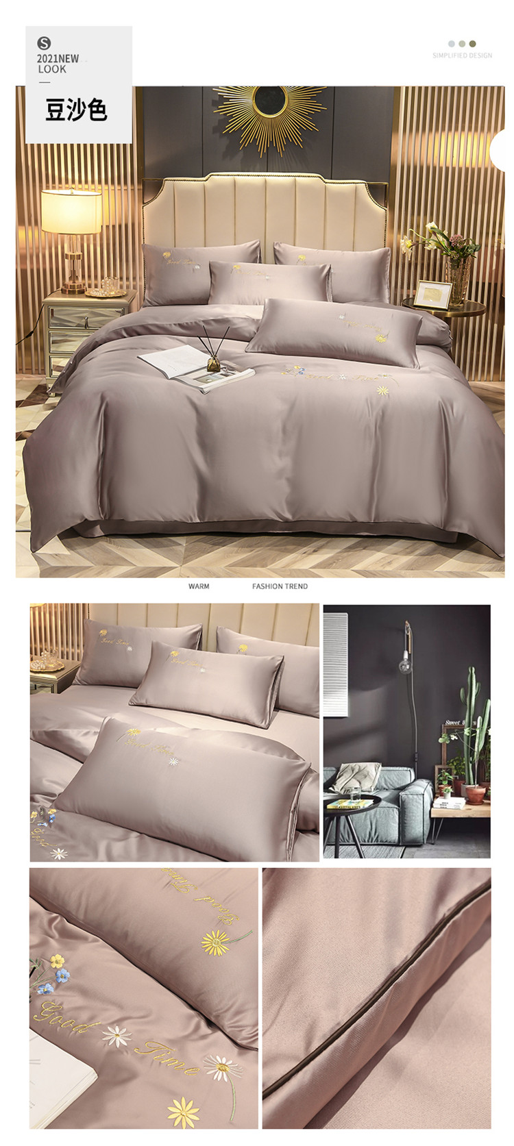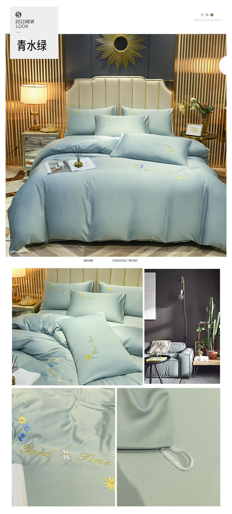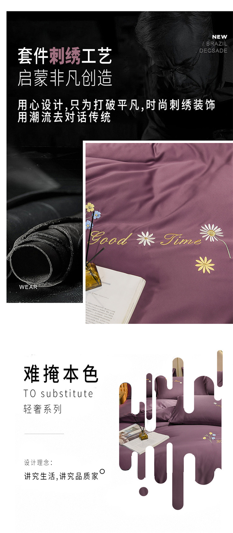 (总)金米诺 2024新款磨毛四件套刺绣系列,豆沙,翡翠绿,抹茶绿,浅姜黄,深蓝,烟灰,烟灰紫