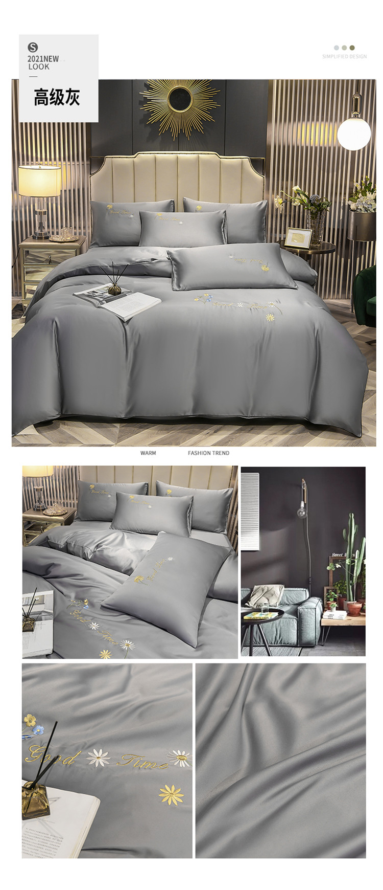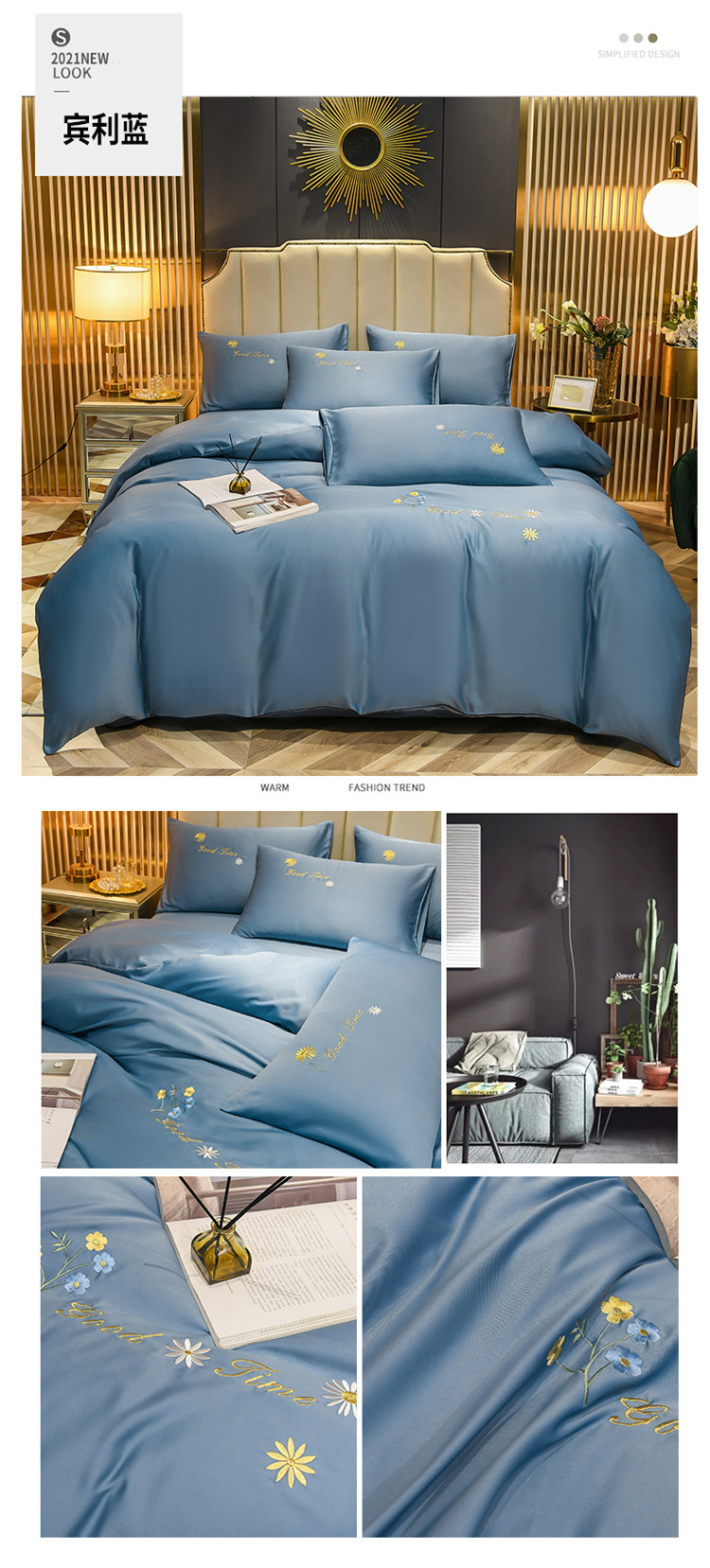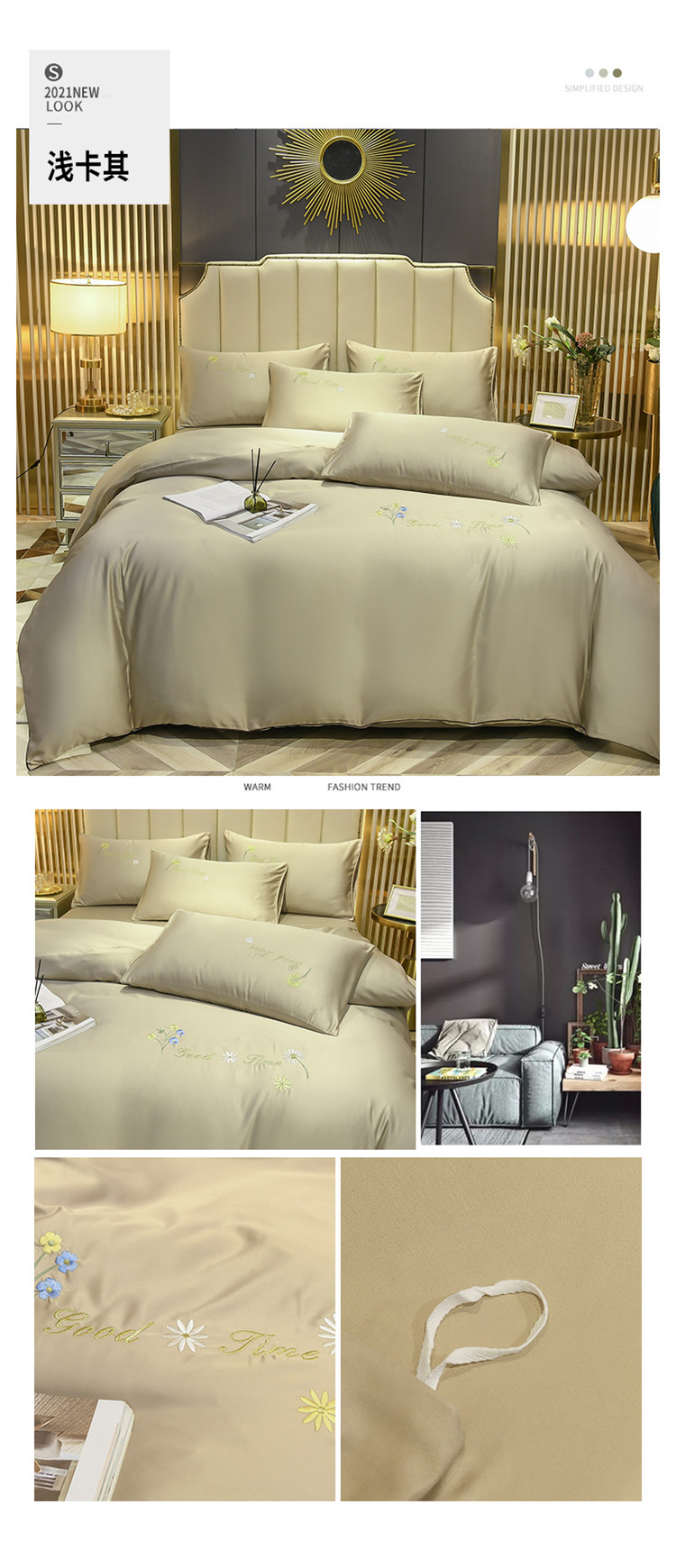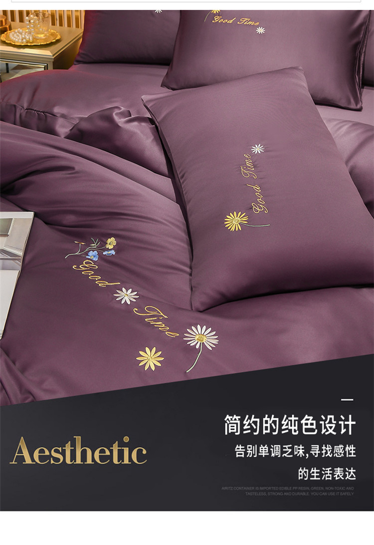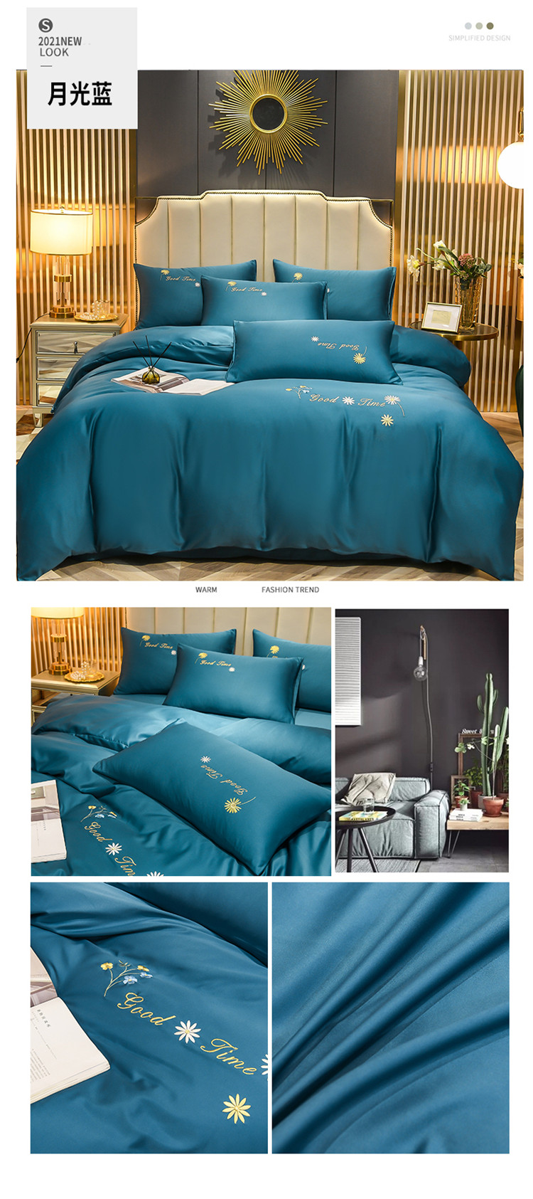 (总)金米诺 2024新款磨毛四件套刺绣系列,豆沙,翡翠绿,抹茶绿,浅姜黄,深蓝,烟灰,烟灰紫