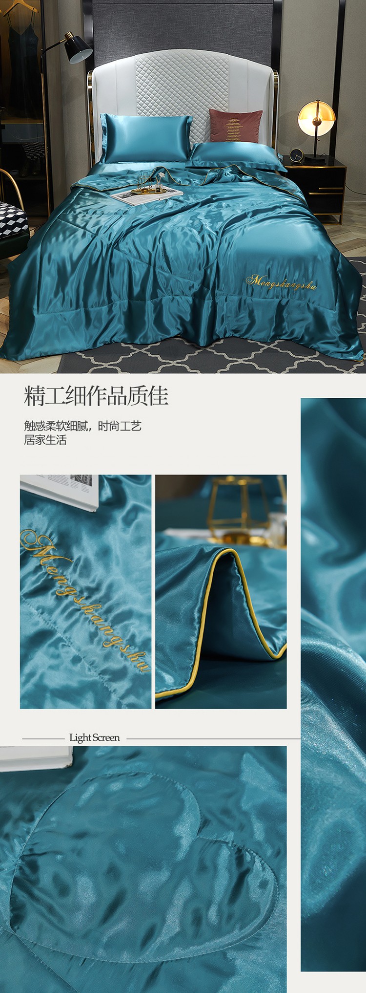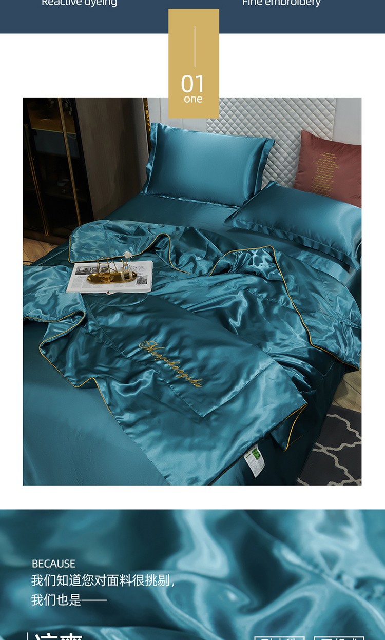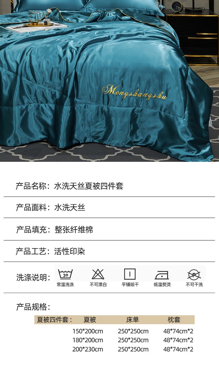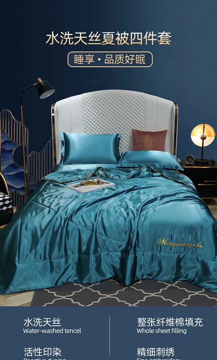 当前位置: 91家纺网 > 商品网购 > 被子 > 莱赛尔夏被 > 梦尚舒新款水洗真丝冰丝天丝夏被四件套床单款床笠款 月光蓝