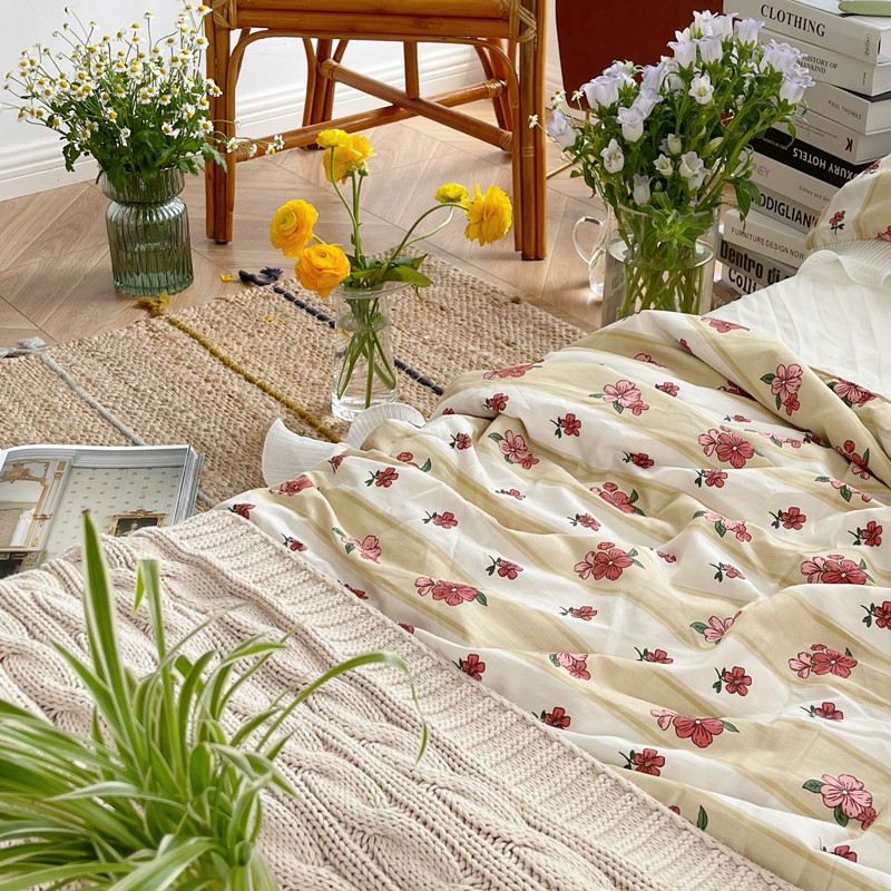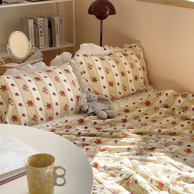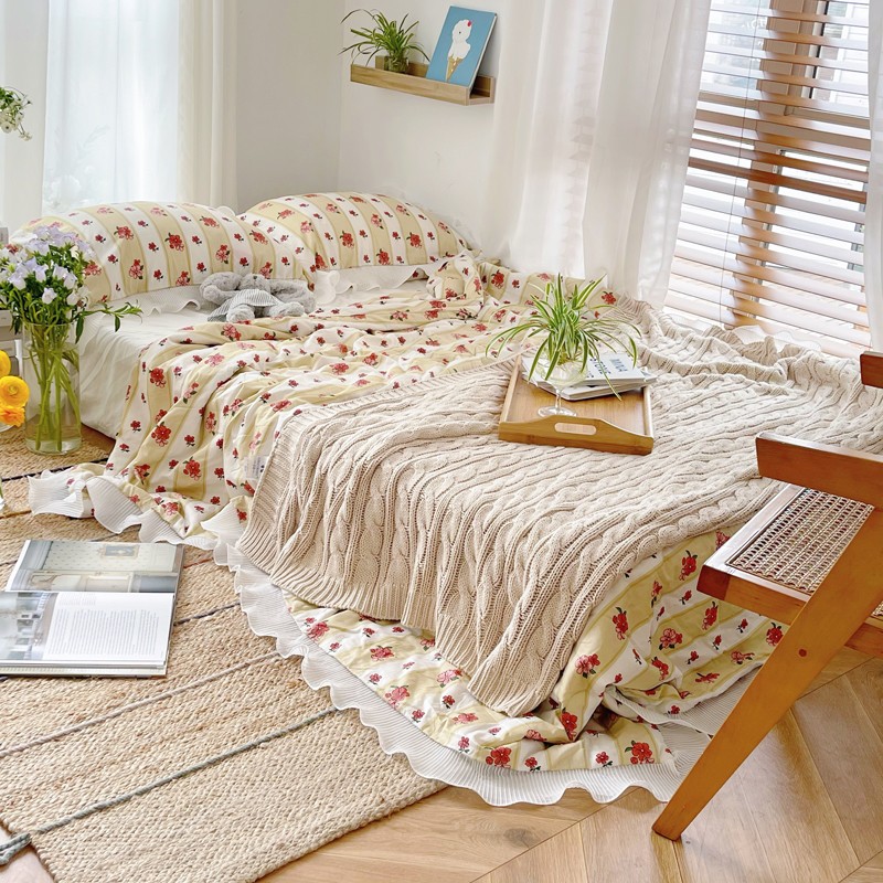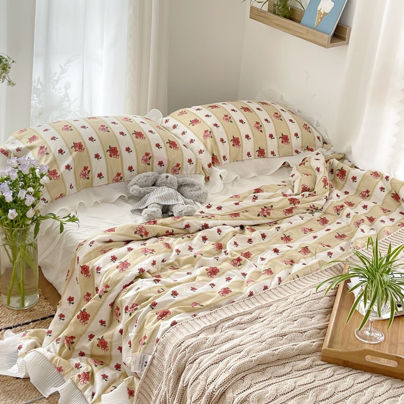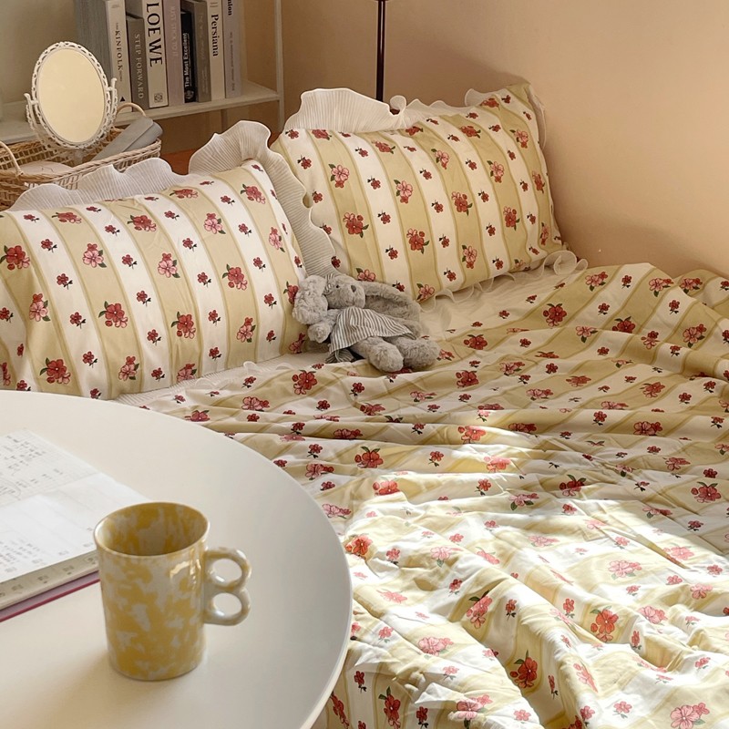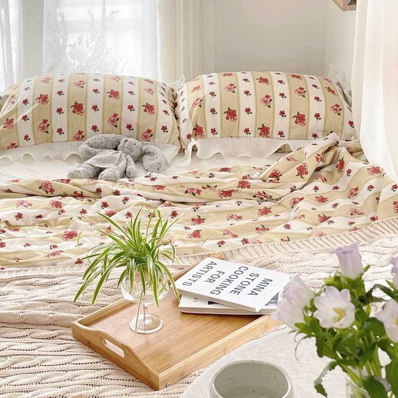 源启生活 2021韩版荷叶边全棉夏被三件套纯棉空调被 花期