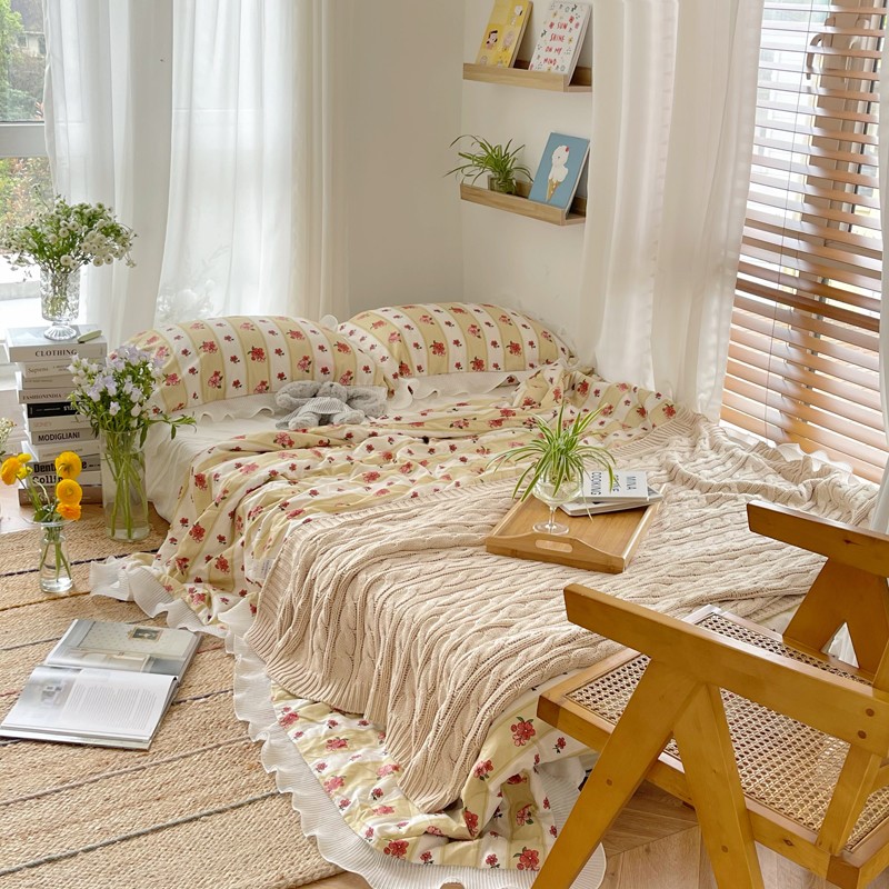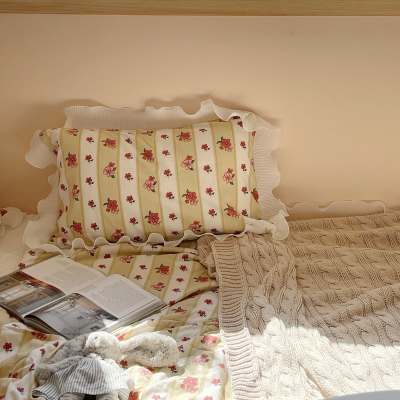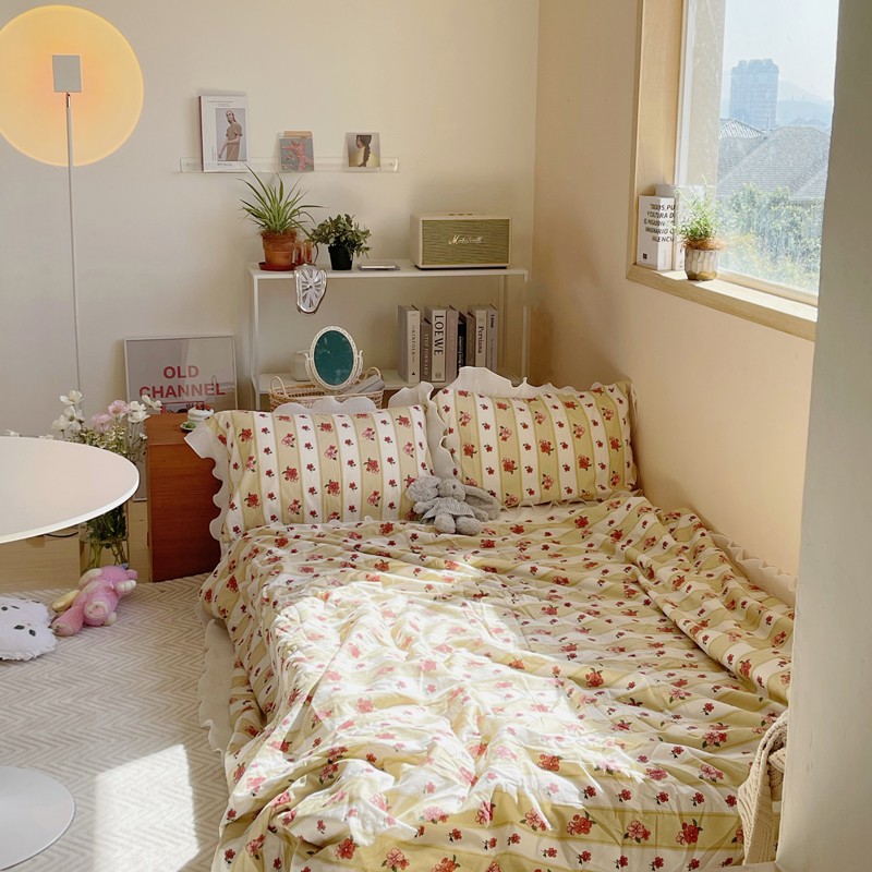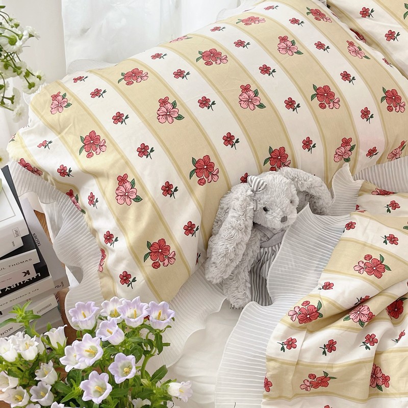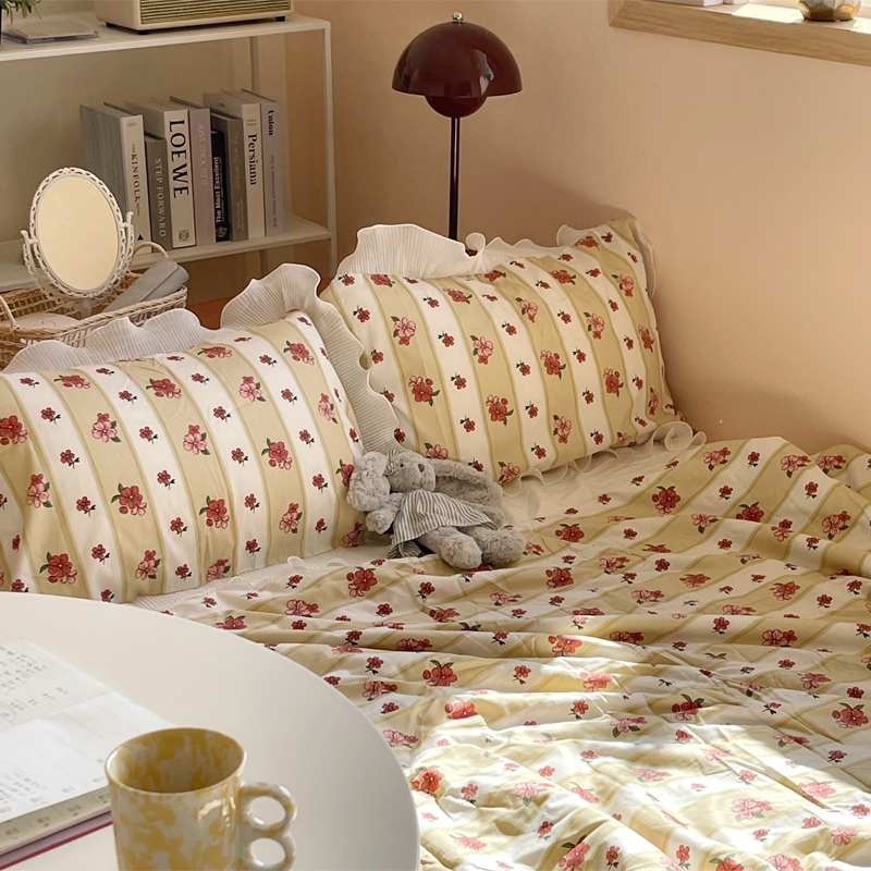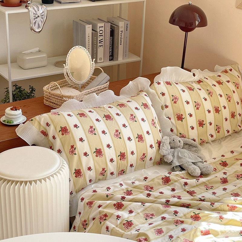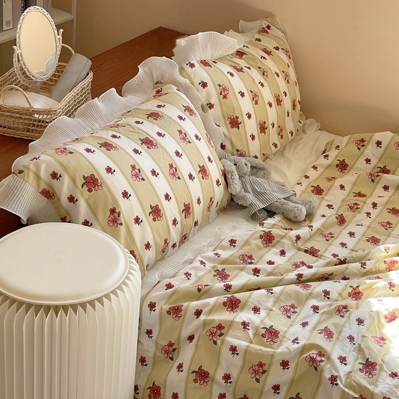 源启生活 2021韩版荷叶边全棉夏被三件套纯棉空调被 花期