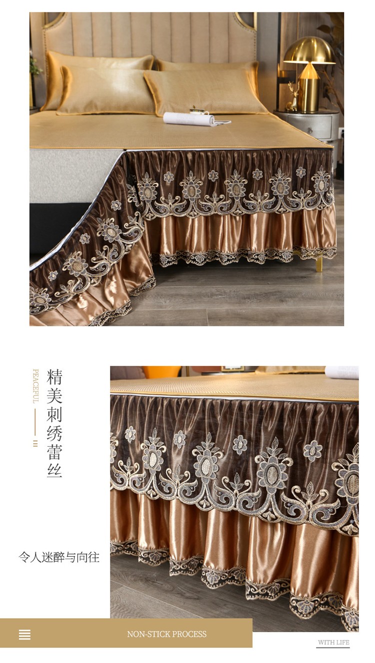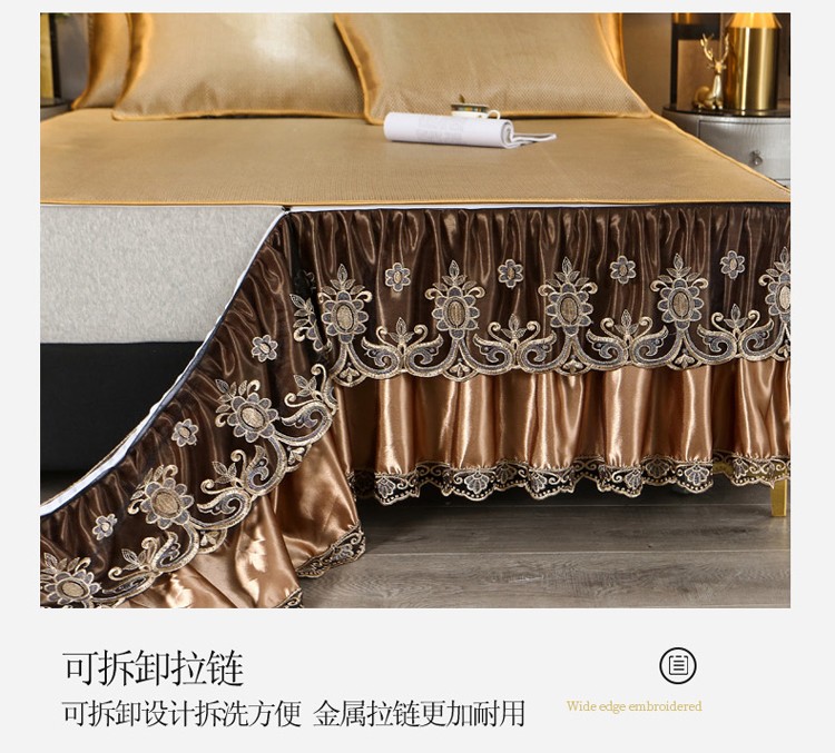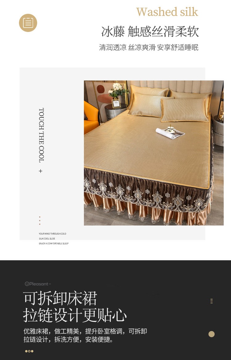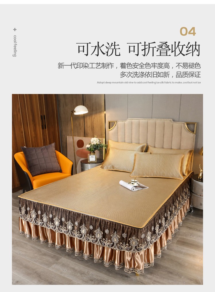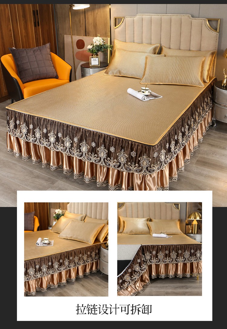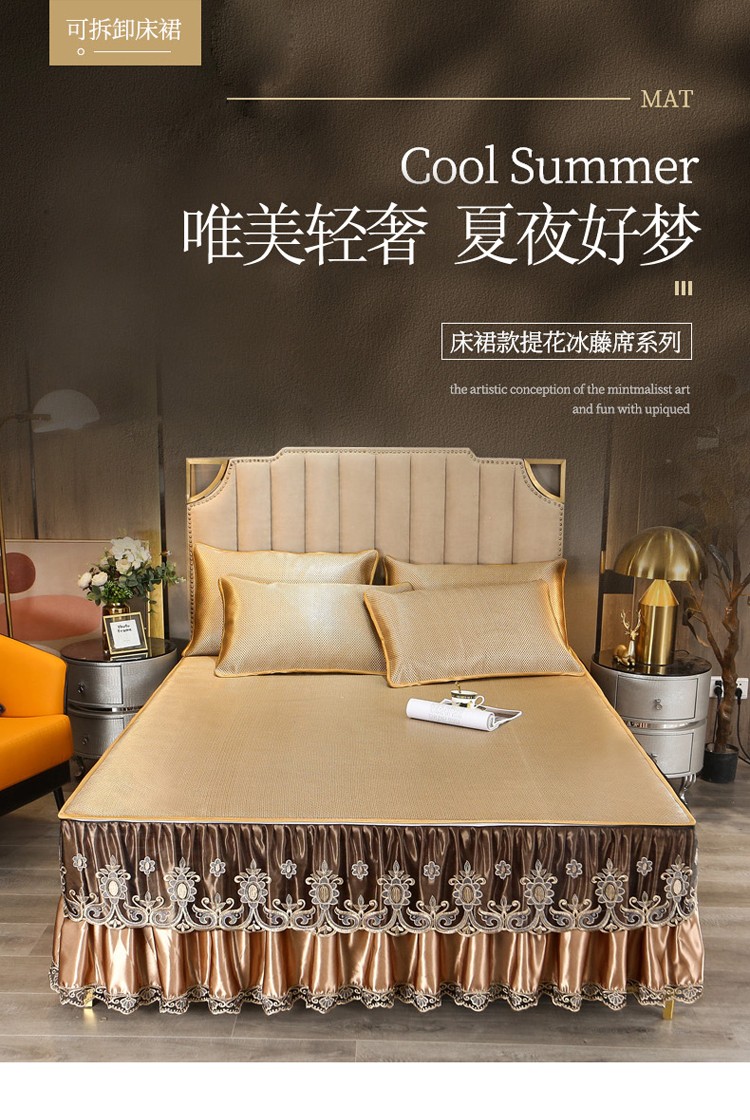 商品名称:菊上家纺 2021新款冰藤席床裙款三件套 香妃金