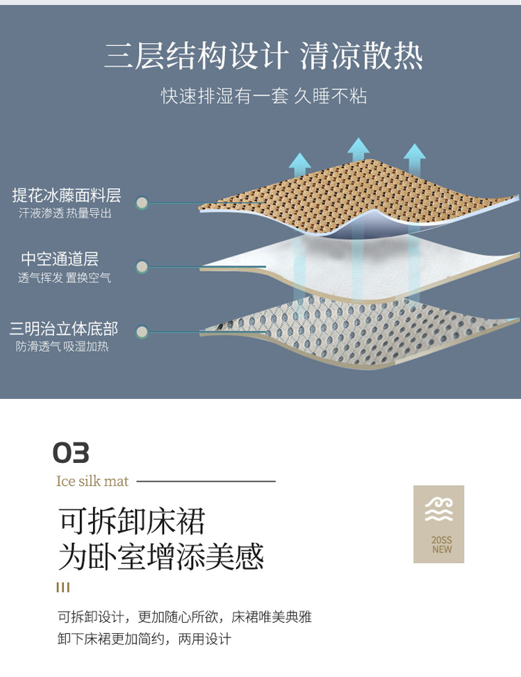 菊上家纺 2021新款冰藤席床裙款三件套 香妃金
