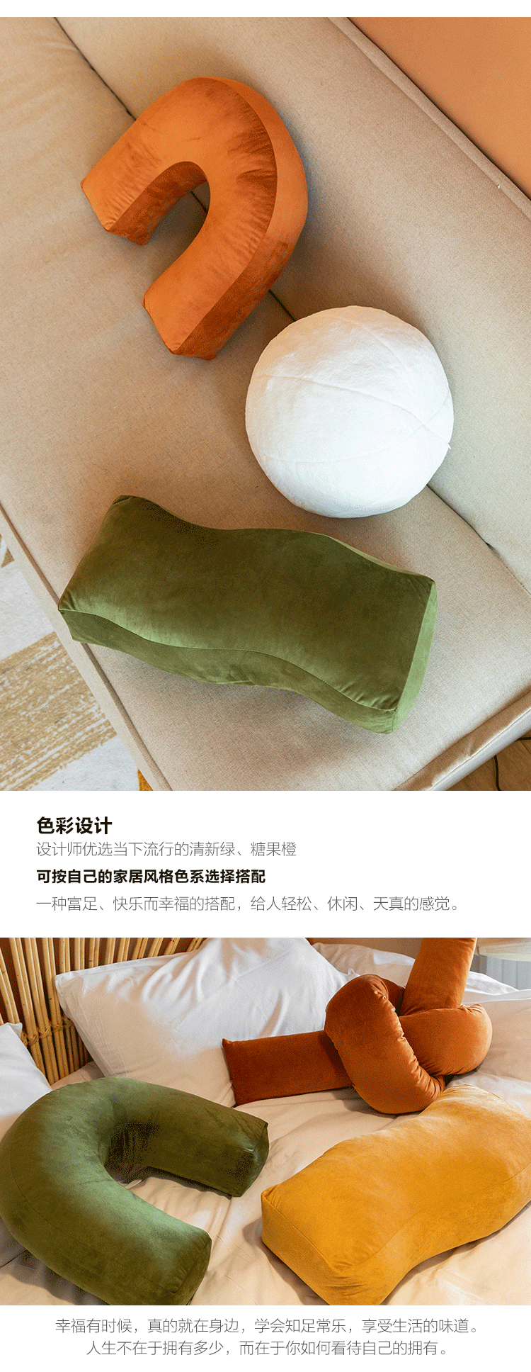(总)美茉家居丝绒拼接异形抱枕样板房儿童房可爱造型含芯腰靠