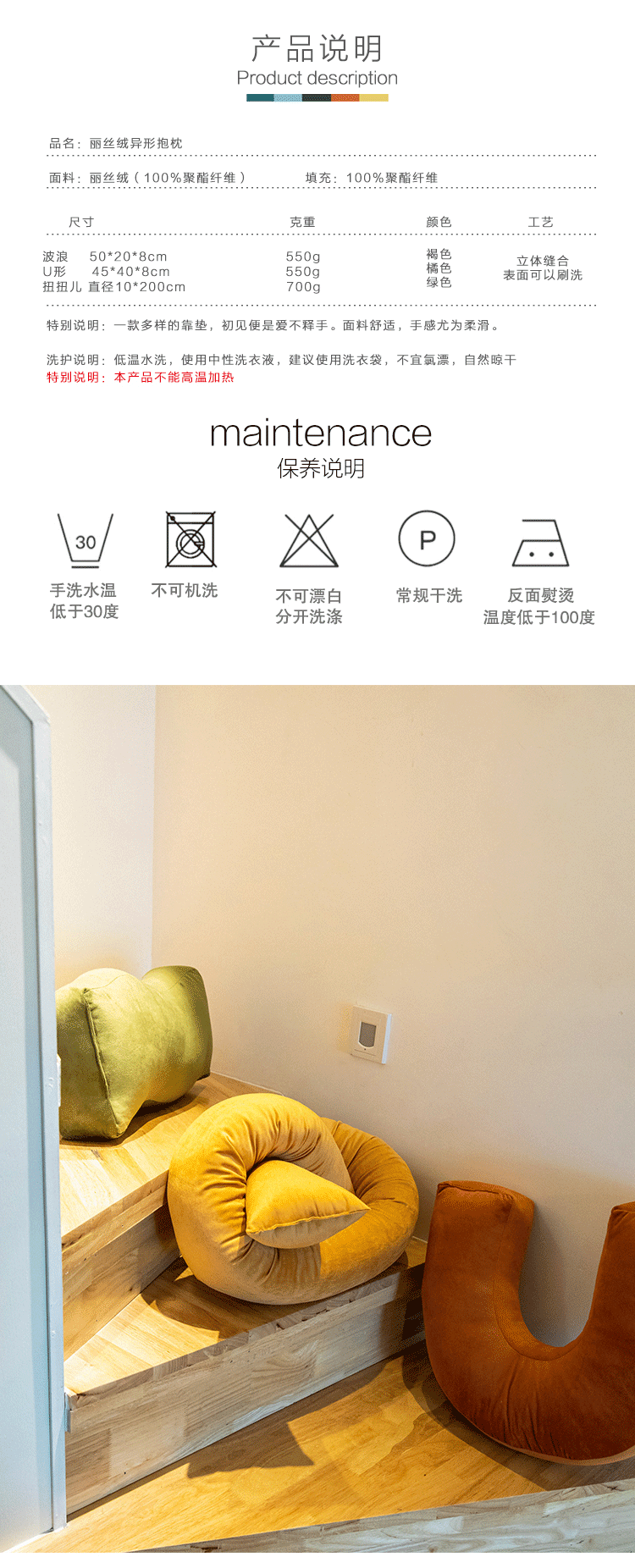 商品名称:(总)美茉家居丝绒拼接异形抱枕样板房儿童房可爱造型含芯腰靠