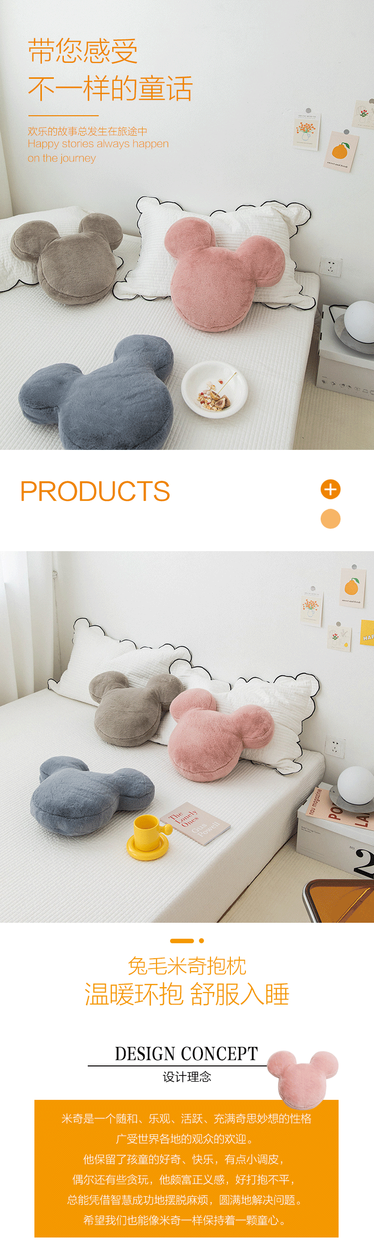 (总)美茉家居兔毛绒异形卡通抱枕可爱米奇米妮形状含芯腰靠