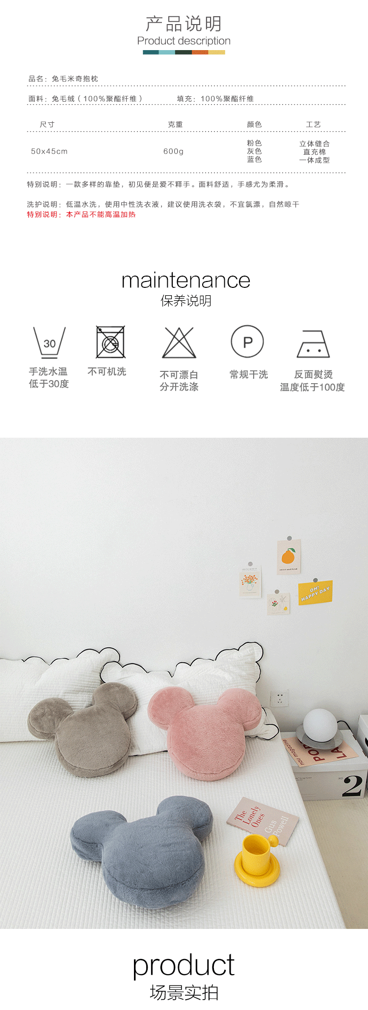 商品名称:(总)美茉家居兔毛绒异形卡通抱枕可爱米奇米妮形状含芯腰靠