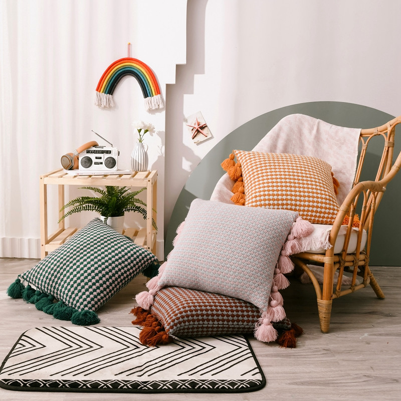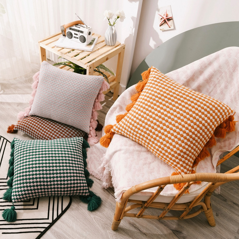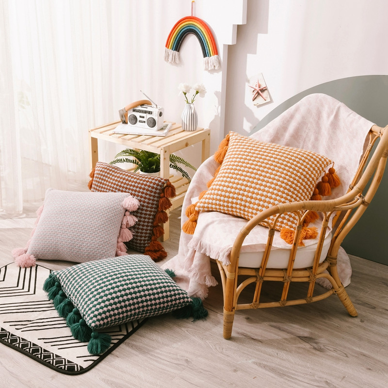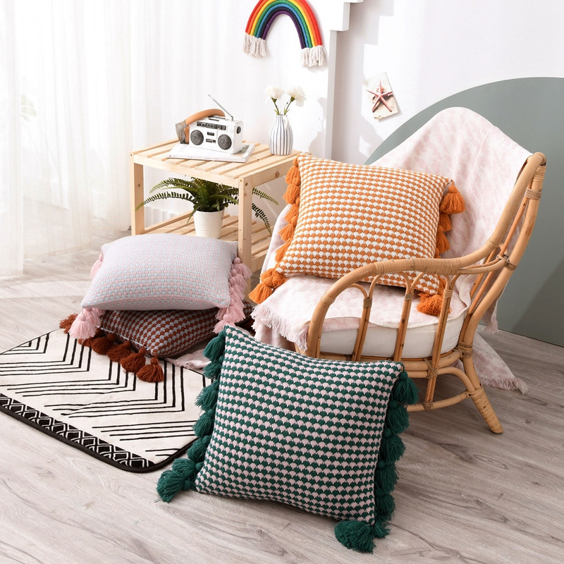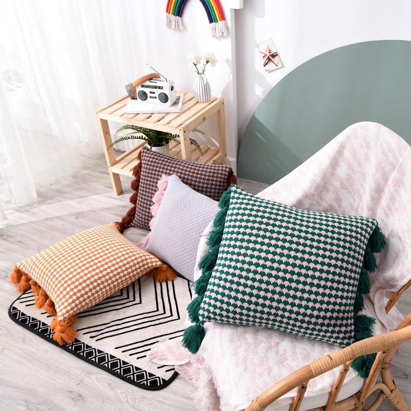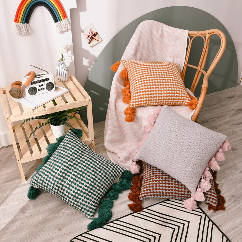 (总)918拾朵家居 2021新款针织色织纹流苏抱枕