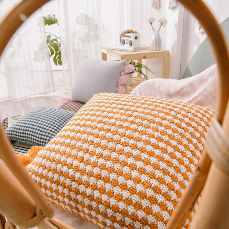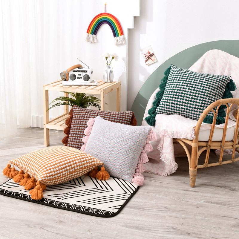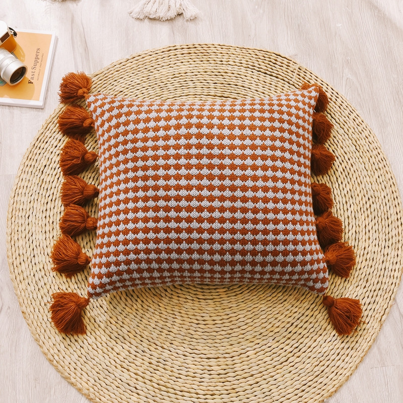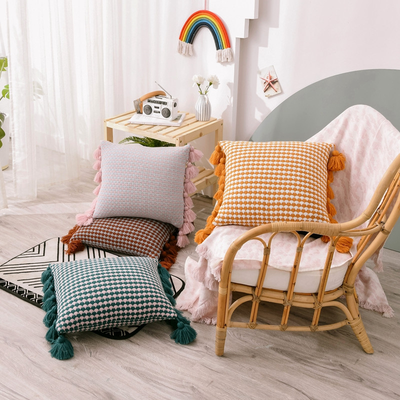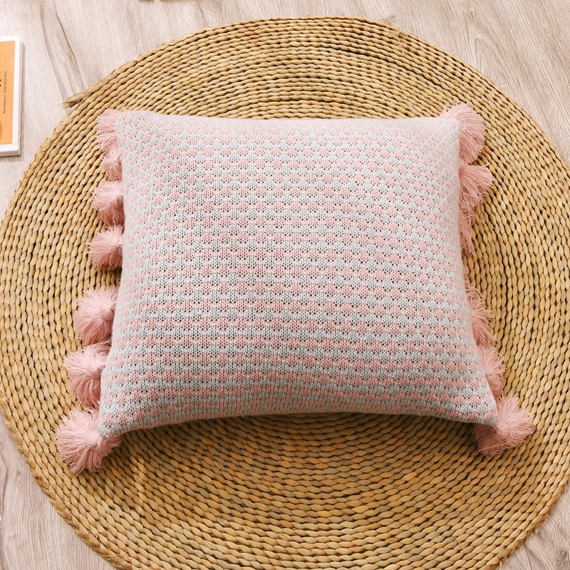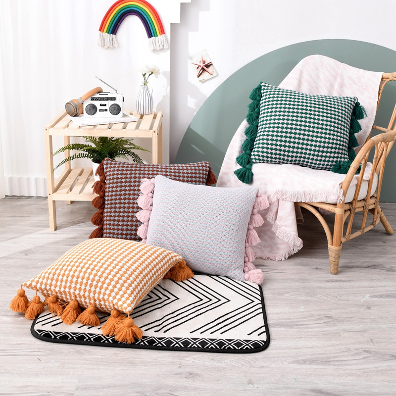(总)918拾朵家居 2021新款针织色织纹流苏抱枕