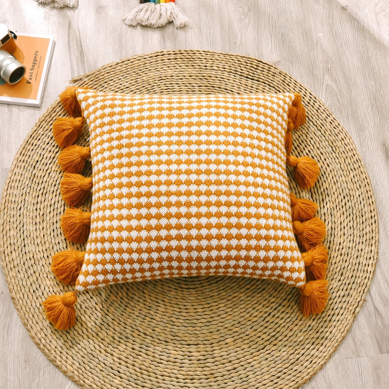 商品名称:(总)918拾朵家居 2021新款针织色织纹流苏抱枕