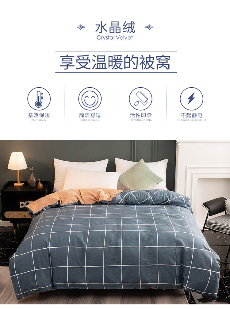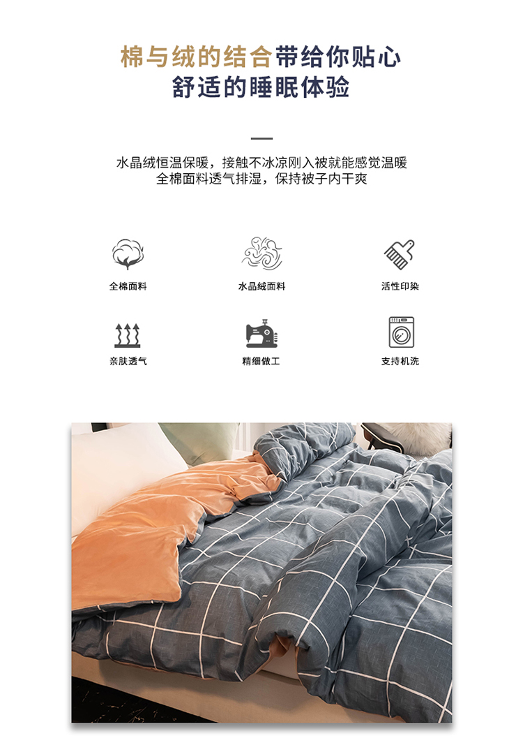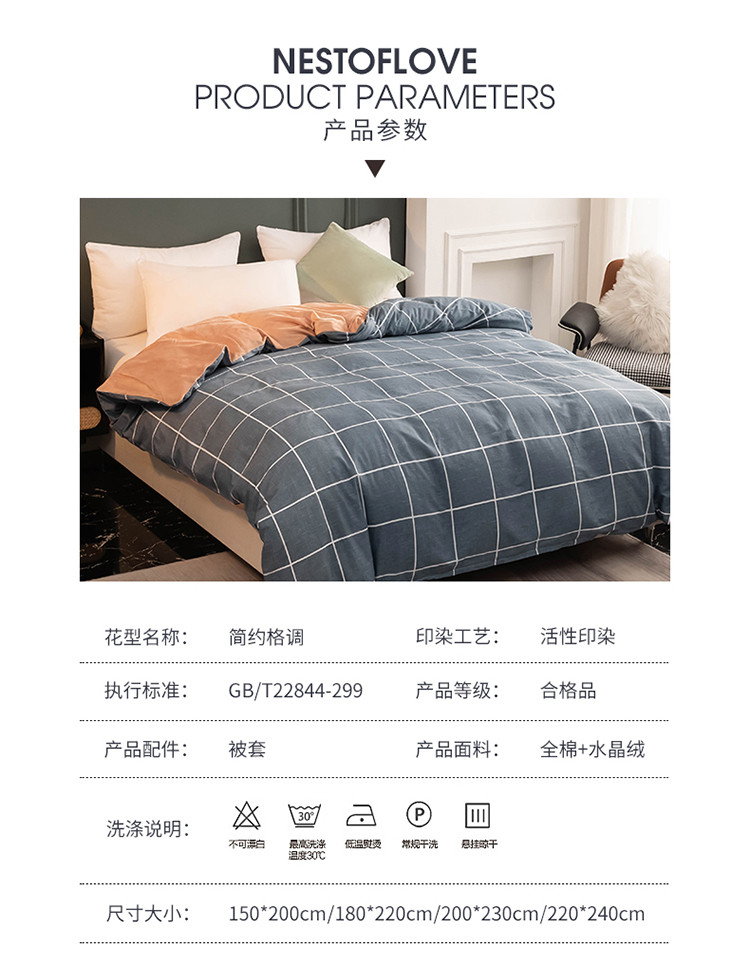 商品名称:芃成家纺 2021新款棉加绒单被套 简约格调