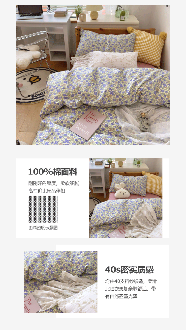当前位置: 91家纺网 > 商品网购 > 床品套件 > 三件套 > 三朵 2021全棉单人学生简约三件套 艾米