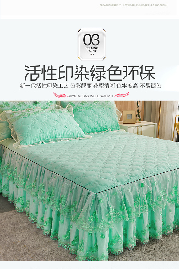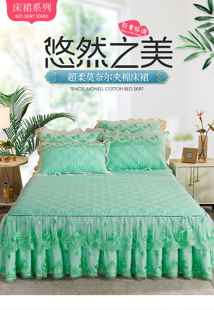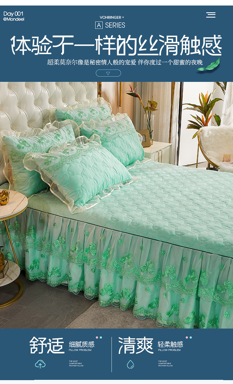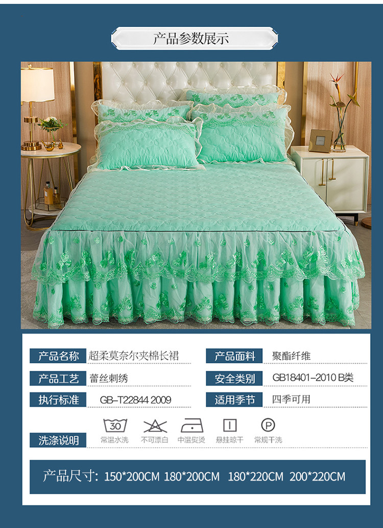 商品名称:瑞宝 2025新款超柔莫奈尔夹棉单品床裙 蔷薇恋-绿色