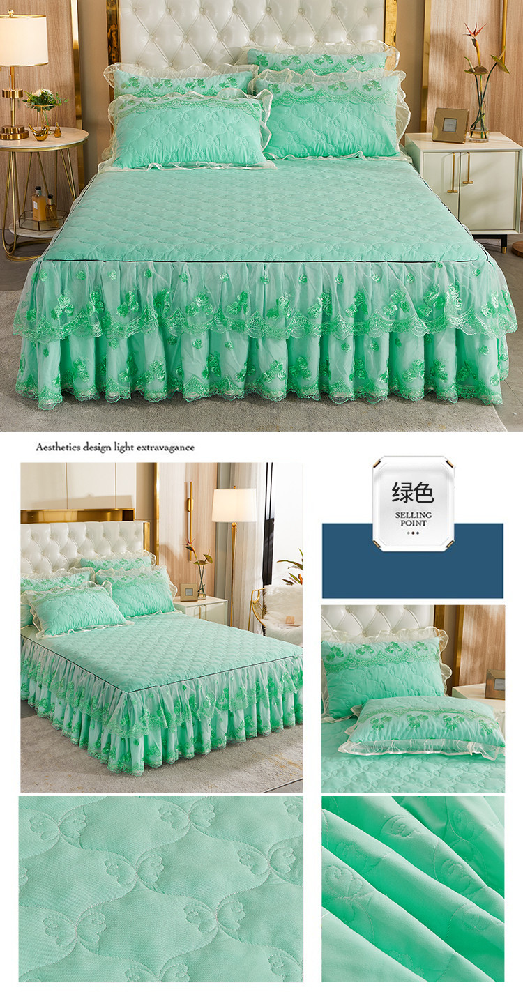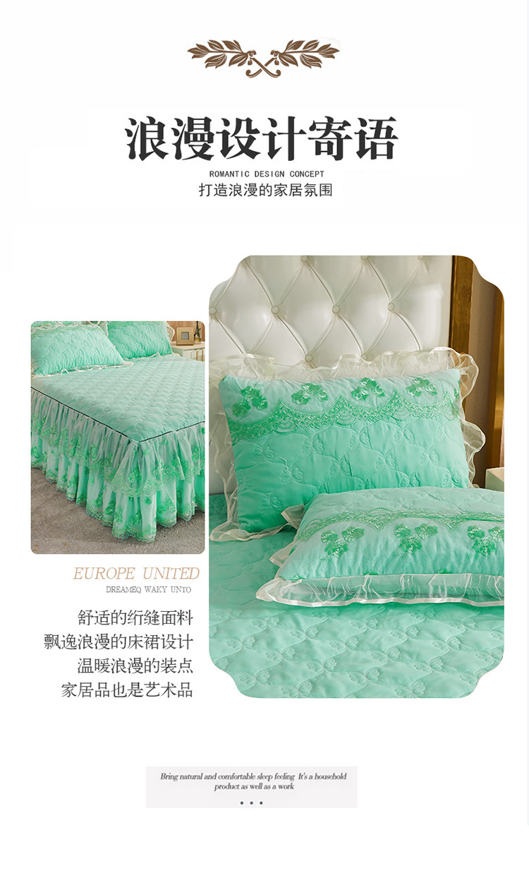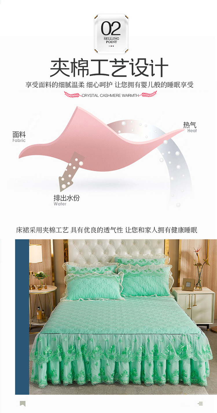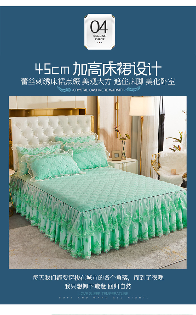 商品名称:瑞宝 2025新款超柔莫奈尔夹棉单品床裙 蔷薇恋-绿色