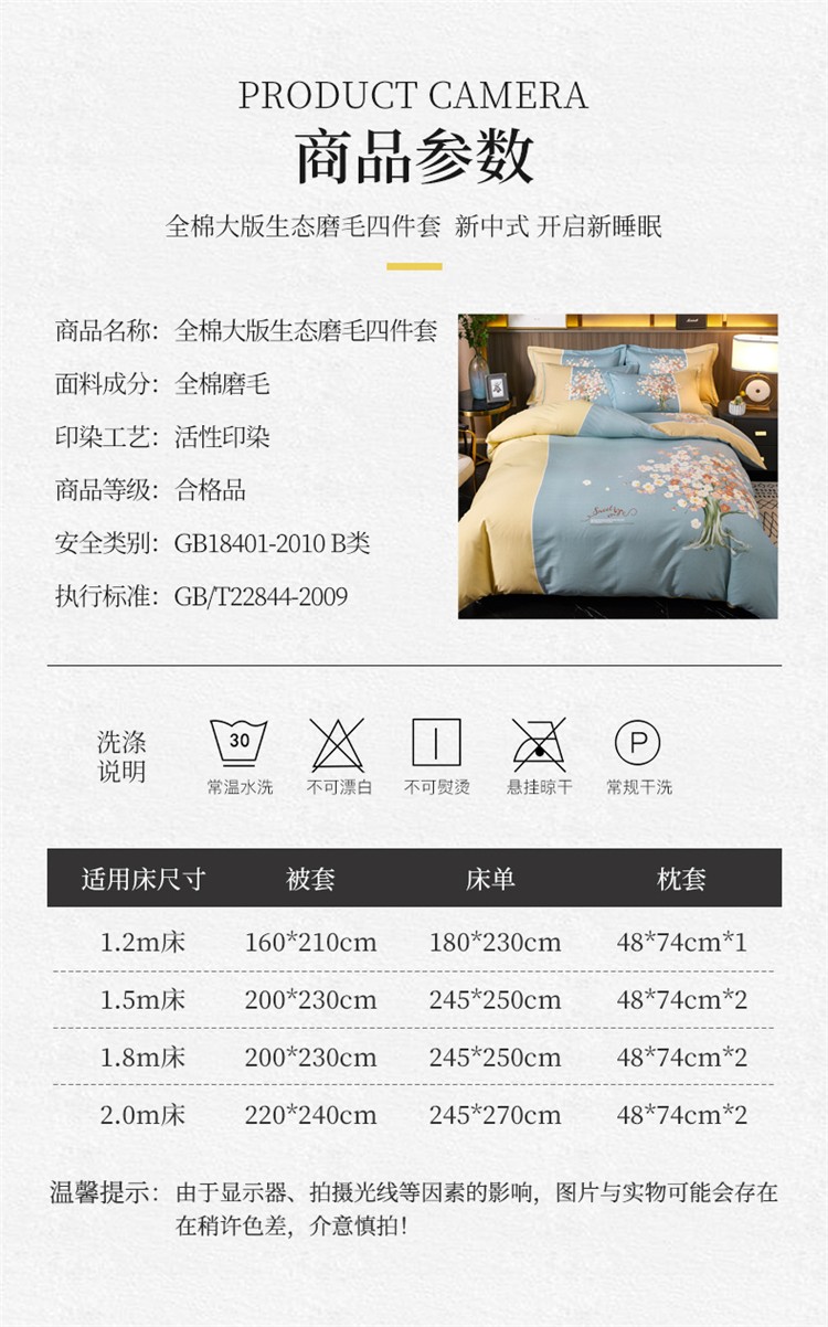 商品名称:芊寻家居 2024新款全棉大版磨毛四件套 花语妙恋