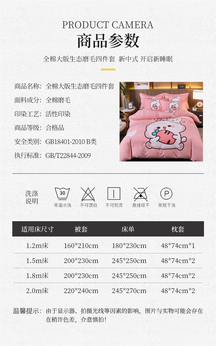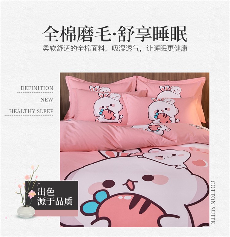 商品名称:芊寻家居 2024新款全棉大版磨毛四件套 迷你兔