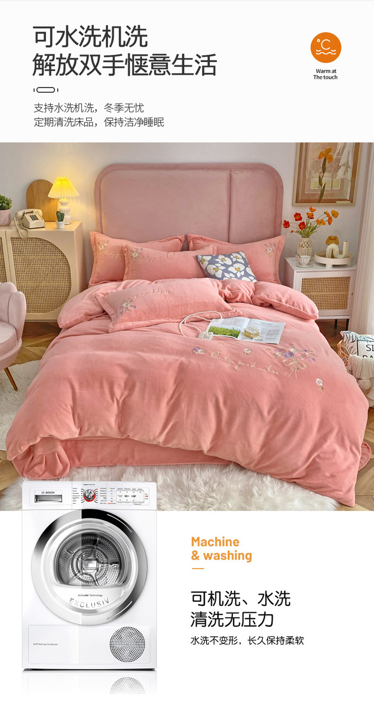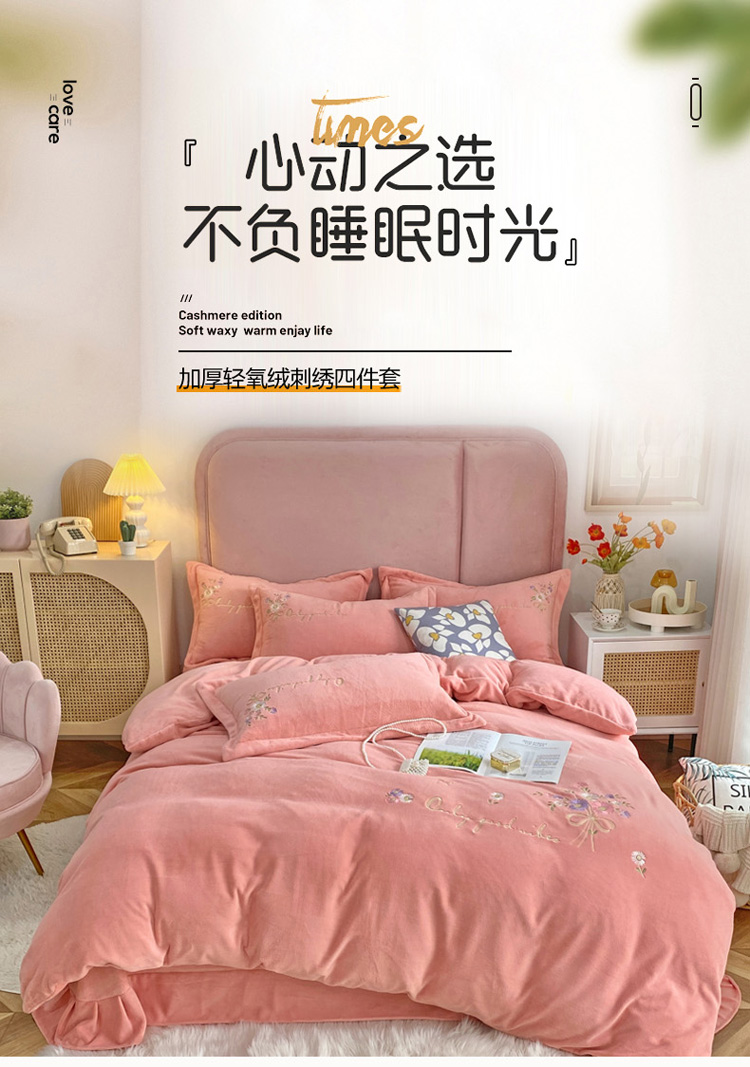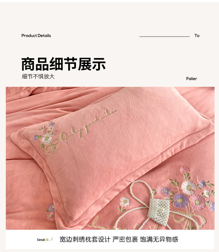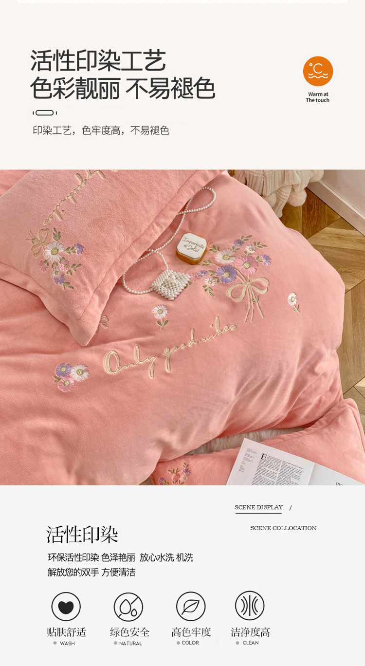 (总)星尚家纺 2024新款全消光230g牛奶绒刺绣保暖四件套-花漾,晨雾绿,豆沙粉,樱花粉