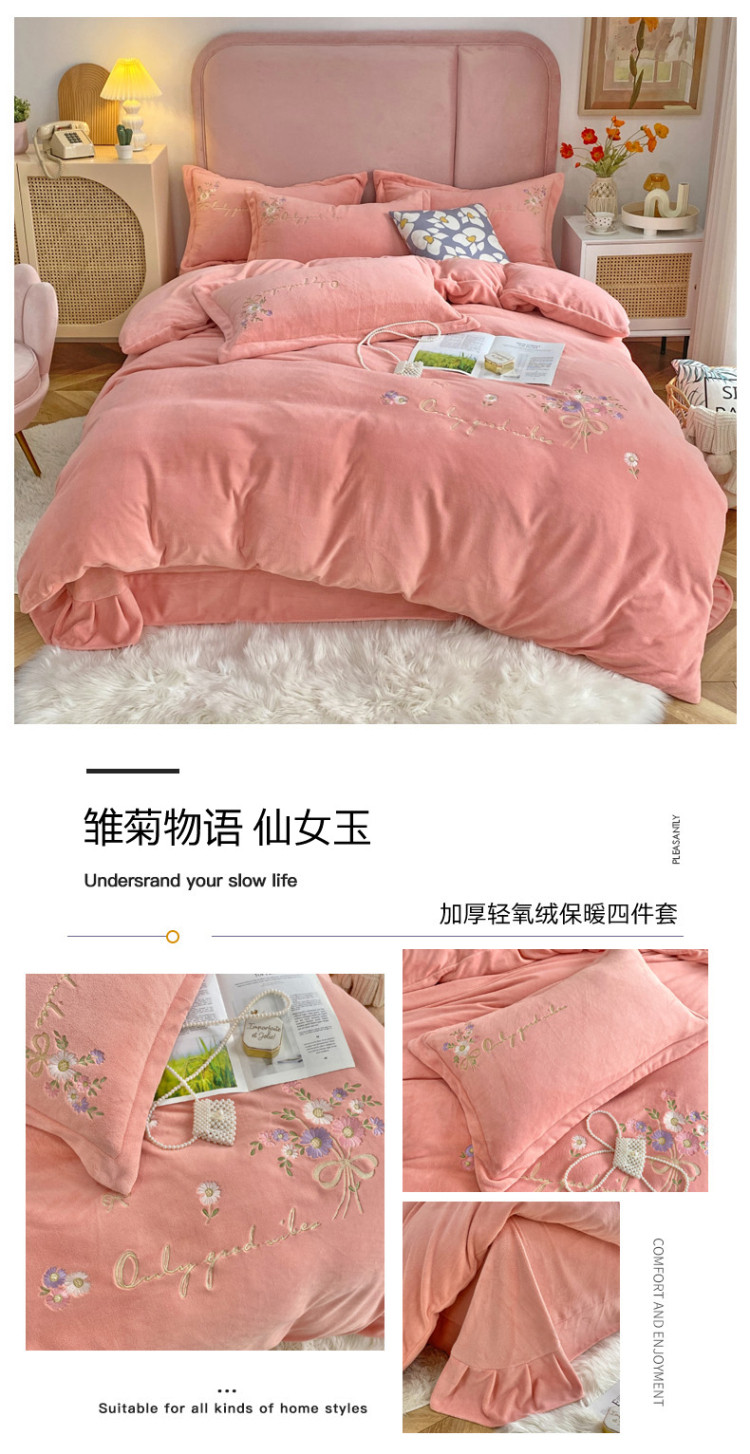 星尚家纺 2021新款轻氧绒A类牛奶棉绒加厚绣花四件套 仙女玉