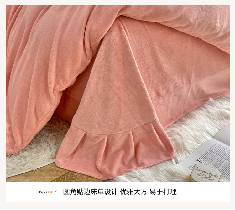 (总)星尚家纺 2024新款加厚保暖全消光牛奶绒夹棉床裙四件套-玫瑰之恋,粉玉,寐紫,浅蓝,水绿