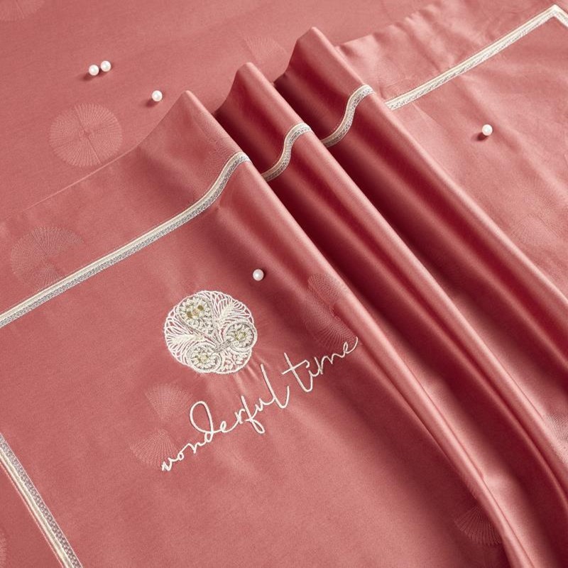 商品名称:玖玖爱家纺2021新款160支贡缎提花里料贡缎磨毛 华尔兹砖红