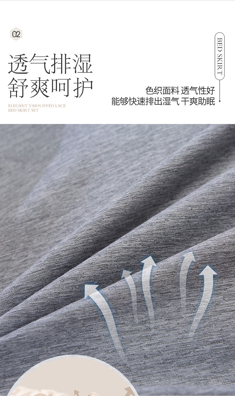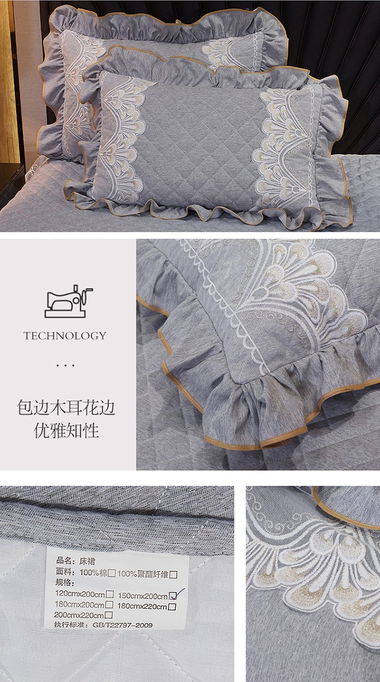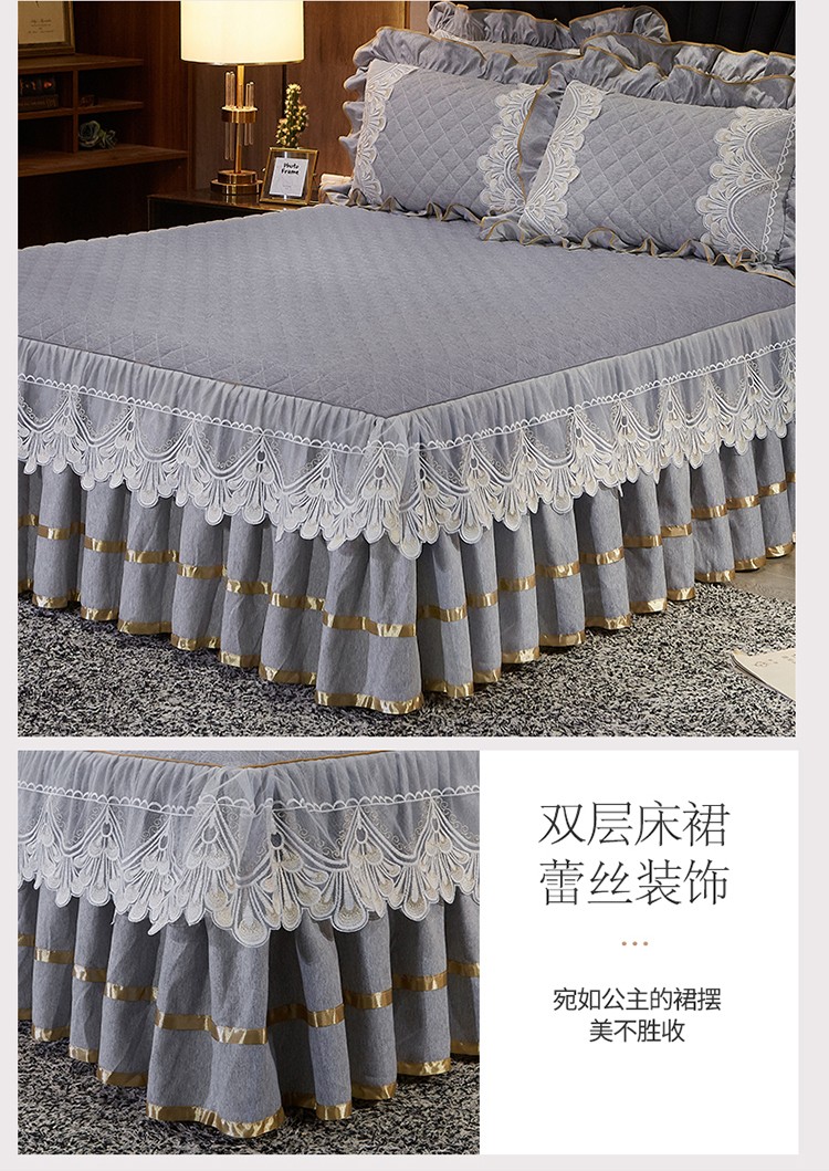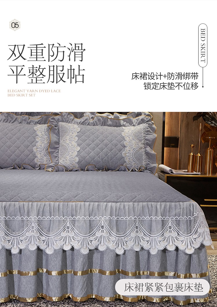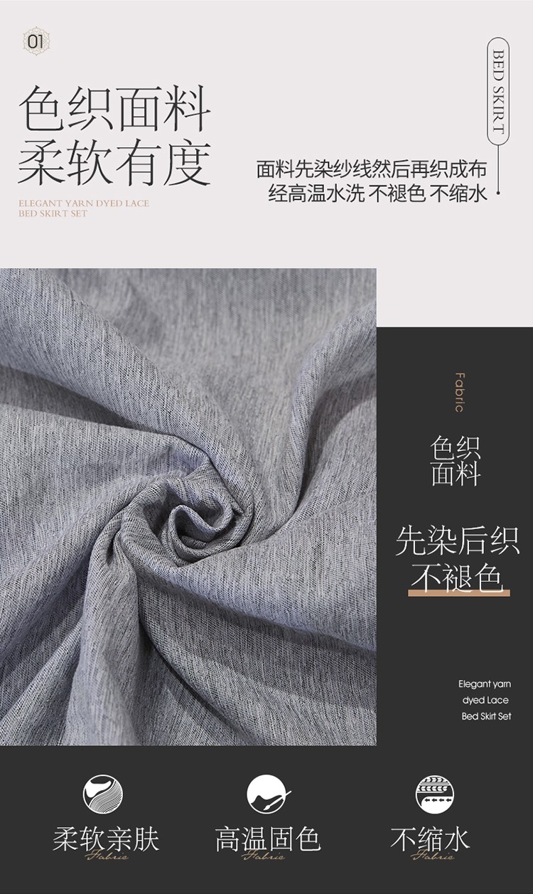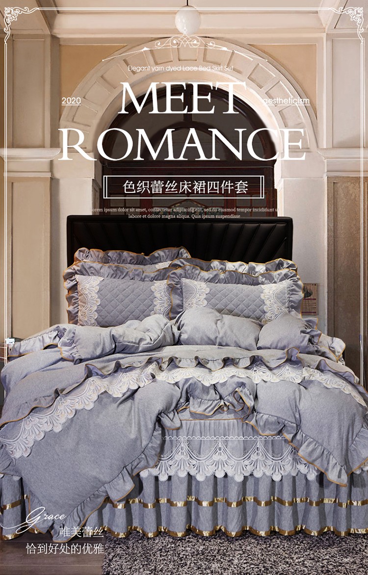 商品名称:网红馆 2025新款芭莎风情色织蕾丝床裙四件套 烟熏灰