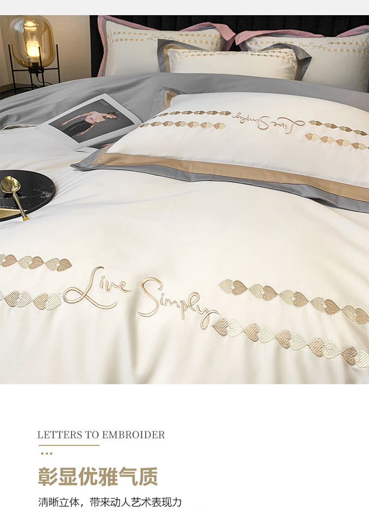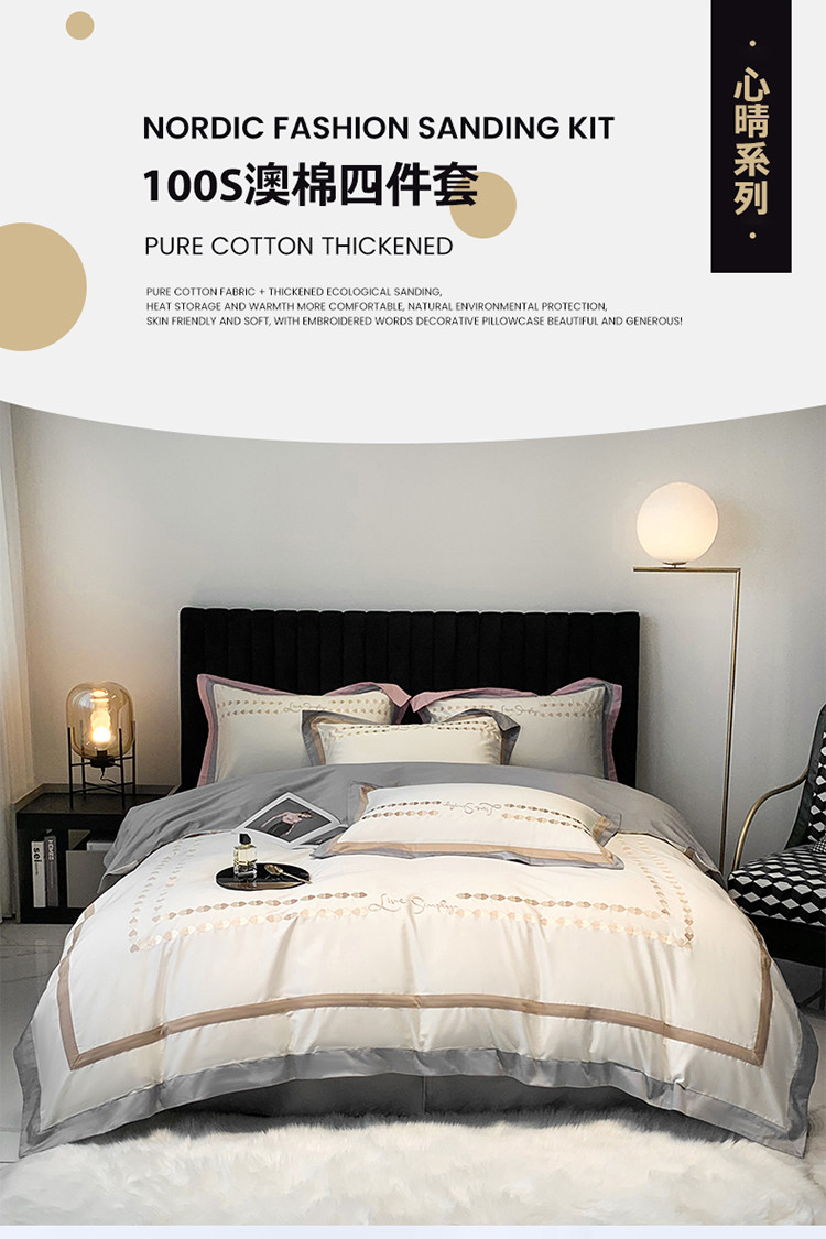 (总)时亿 2023新款100支长绒棉四件套心晴,心晴-粉,心晴-灰,心晴-蓝