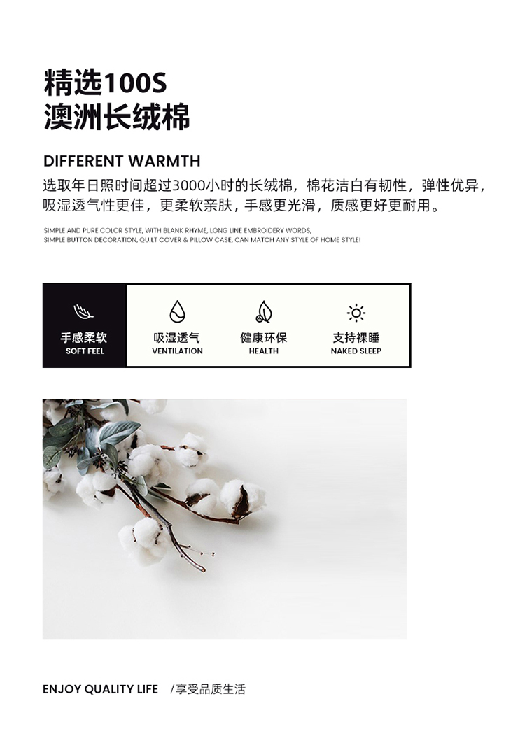 商品名称:时亿 2021新款100支澳棉四件套心晴系列 灰
