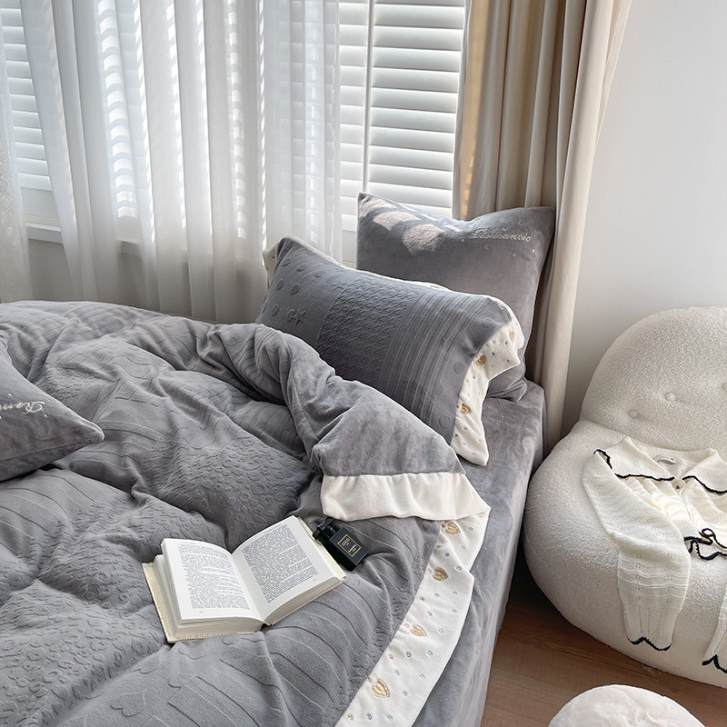 (总)馨蕊家居 2025秋冬新品超细旦磨毛高奢系列四件套-知禾,知禾-高级灰,知禾-蔷薇粉,知禾-月光白
