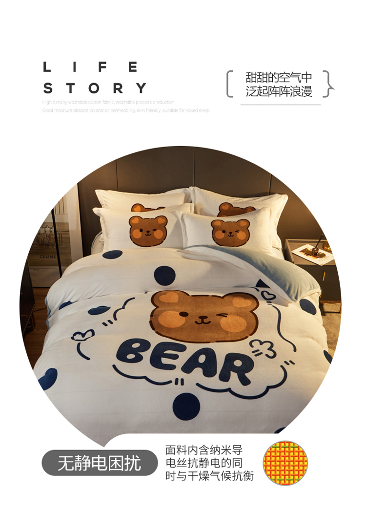 商品名称:慕尚 2022新款北欧牛奶绒大版四件套实拍图 洋气熊
