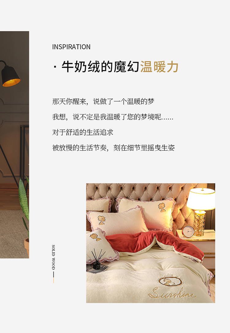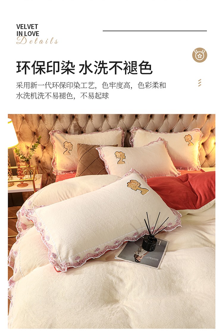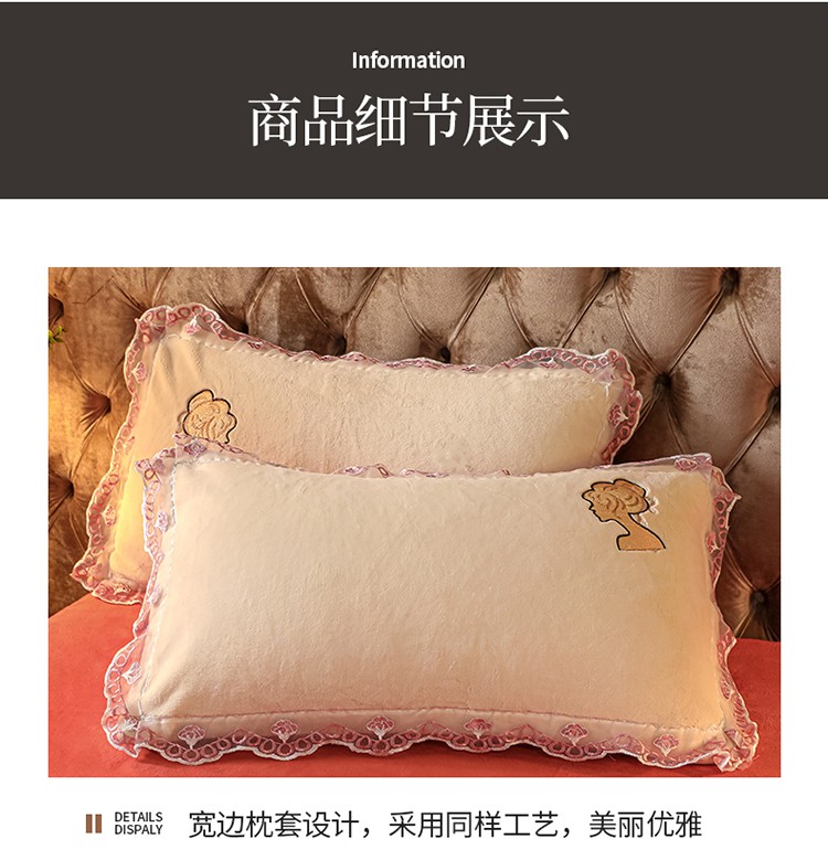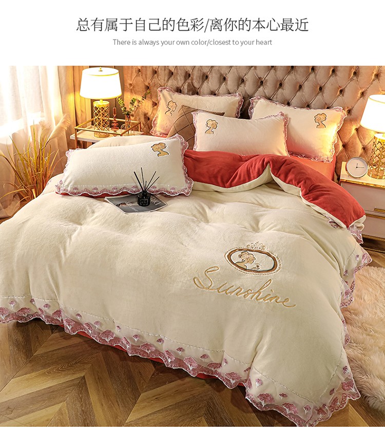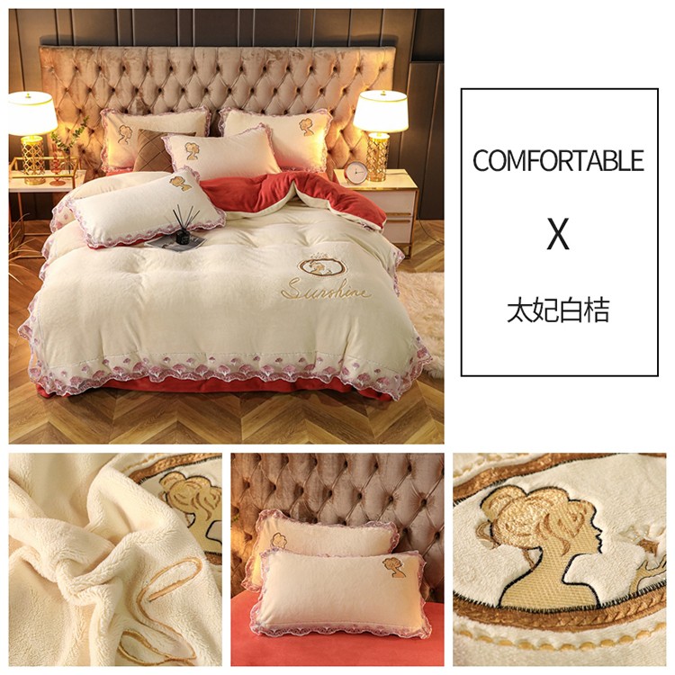 青竹苑2021新款220克加厚保暖牛奶绒刺绣蕾丝太妃款四件套 太妃白桔
