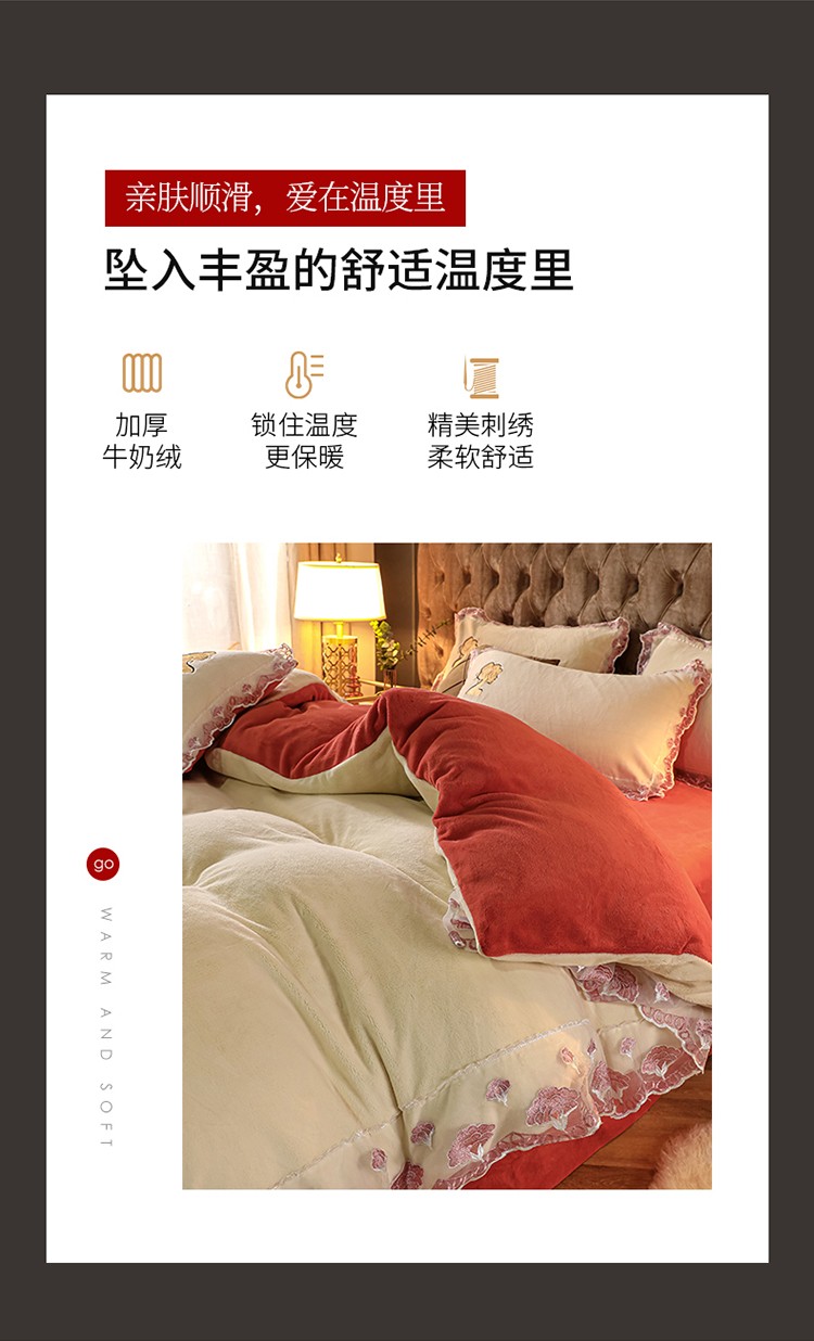 (总)青竹苑 2025新款婴儿绒宝宝绒玫瑰刺绣版床盖款四件套,慕达-红,慕达-绿,慕达-青,慕达-深粉,慕达-妍红,慕达-紫