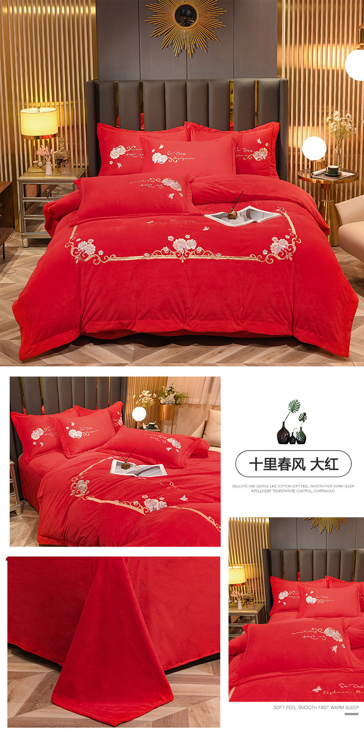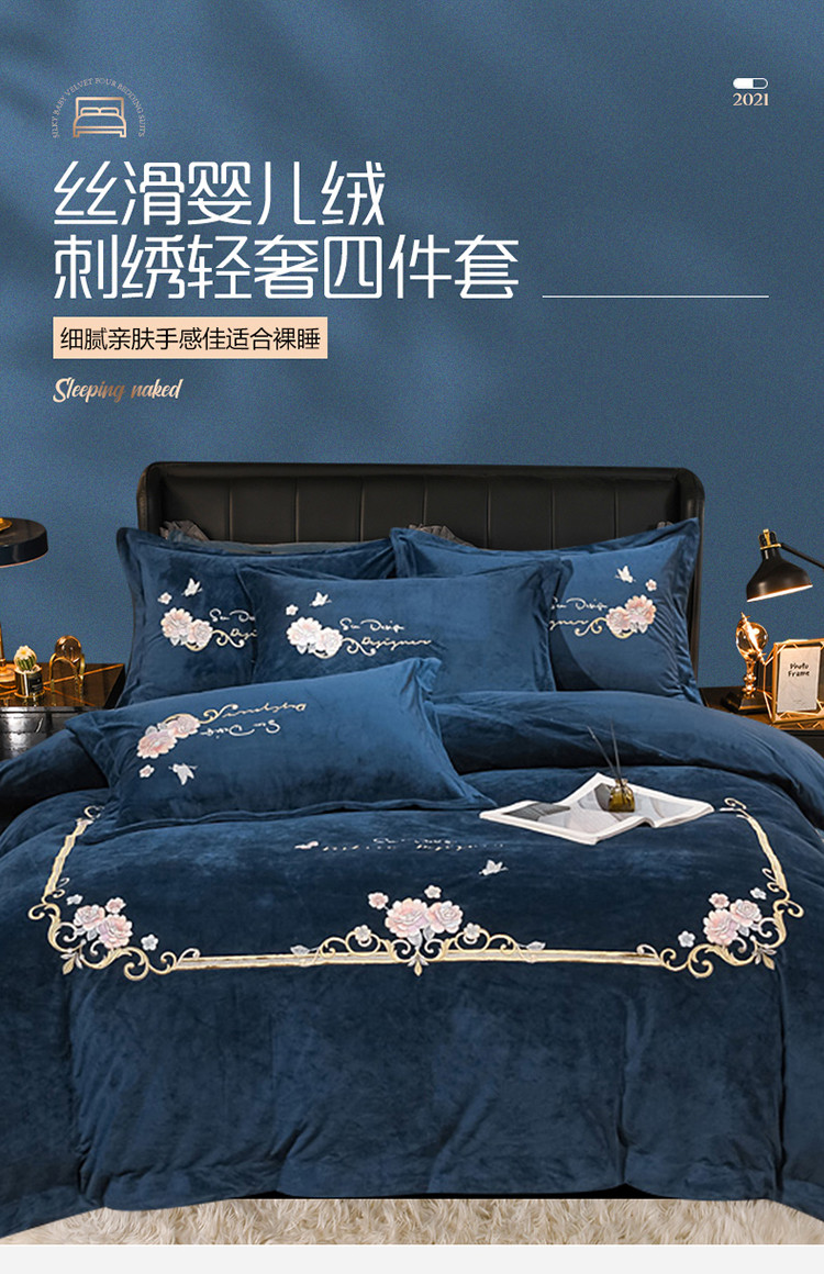 (总)诗黛尔 2021新款秋冬保暖婴儿绒绣花四件套-十里春风