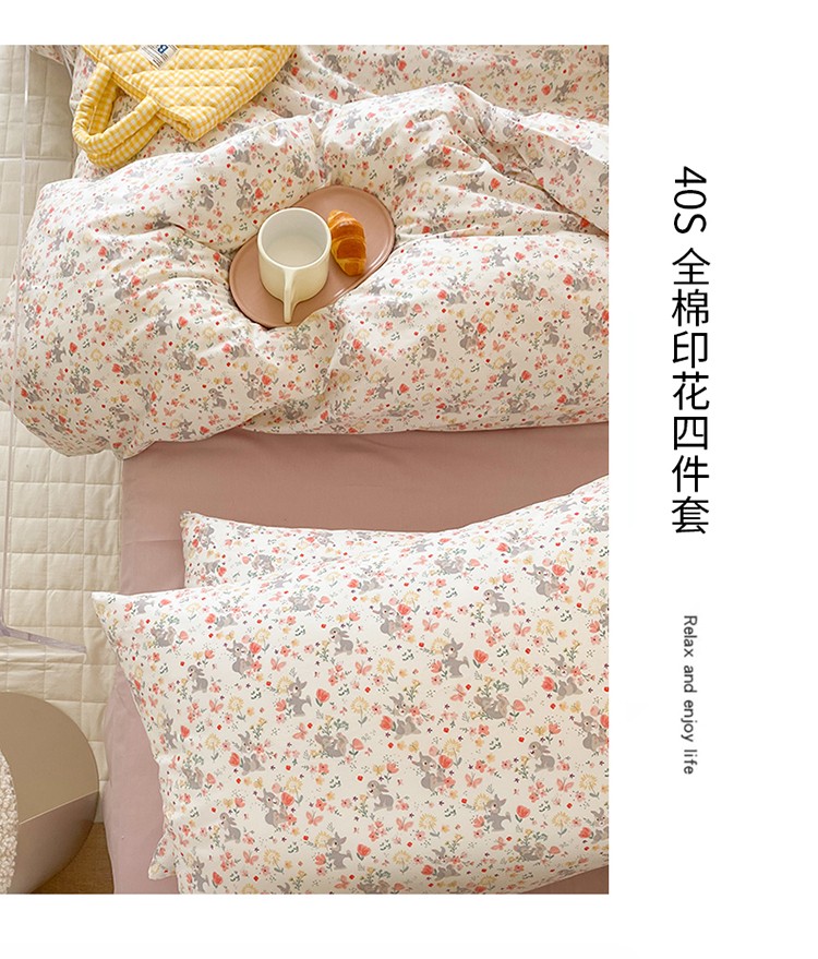 当前位置: 91家纺网 > 商品网购 > 床品套件 > 四件套 > 全棉普通四件套 > 尺素新款40s13372全棉Ins系列四件套花西子-小小兔米