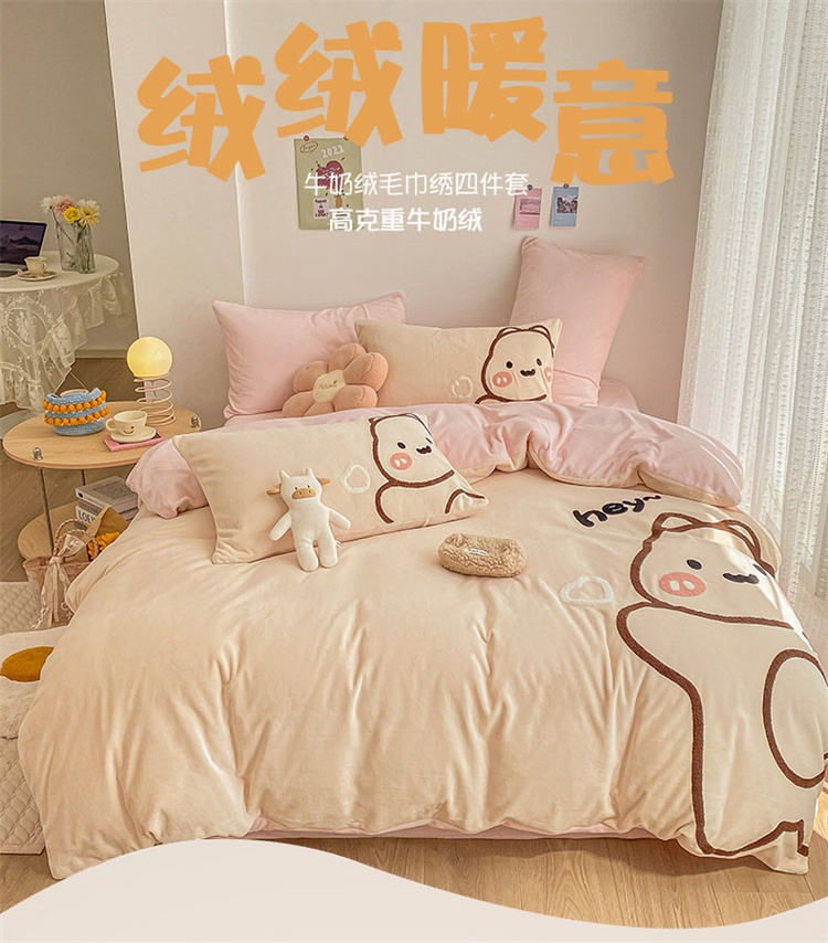 川悦生活 2021新款高克重牛奶绒毛巾绣四件套 小萌龙