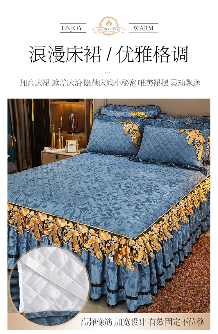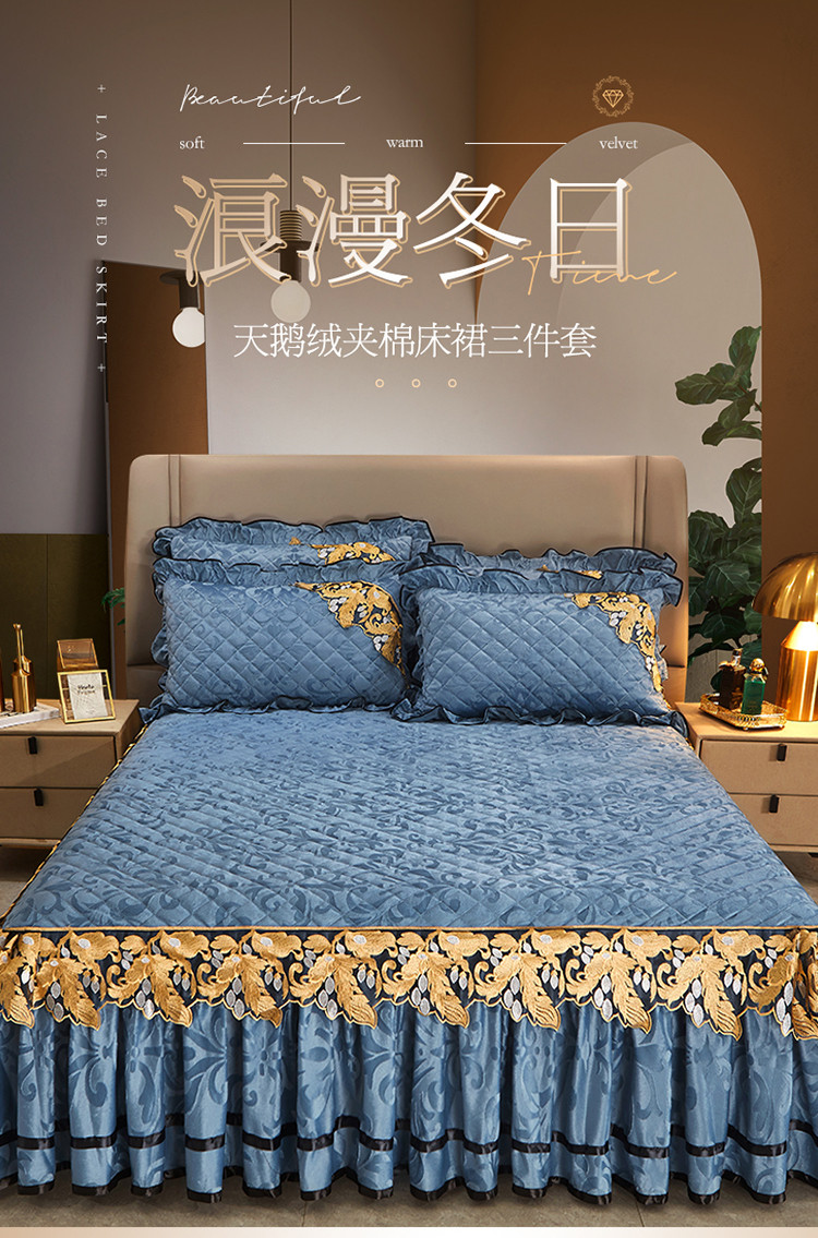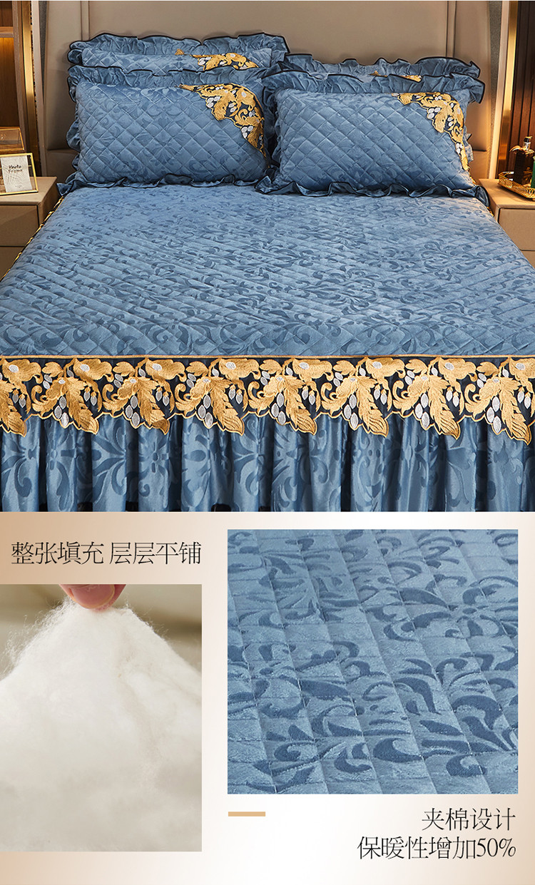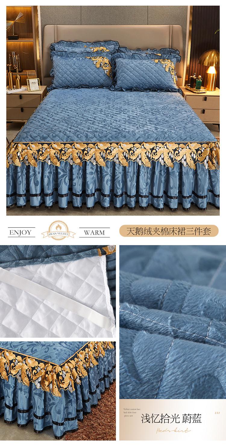 商品名称:网红馆2025新款天鹅绒夹棉单床裙 浅忆拾光-蔚蓝