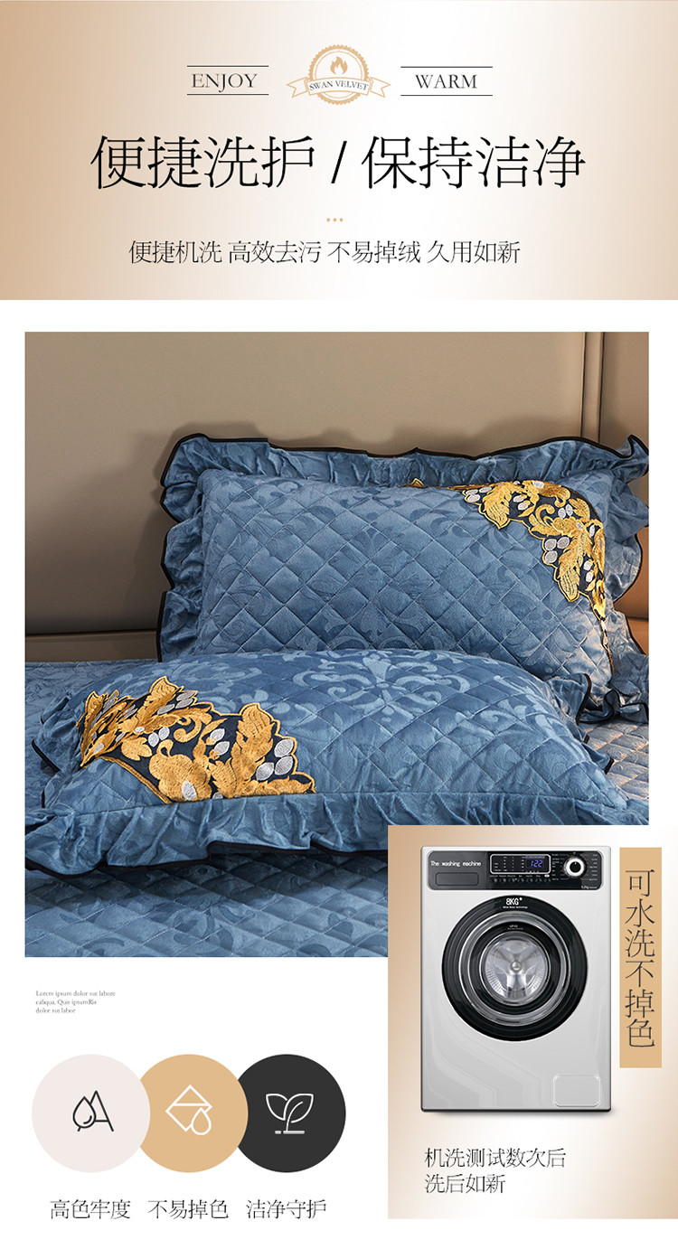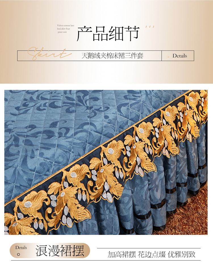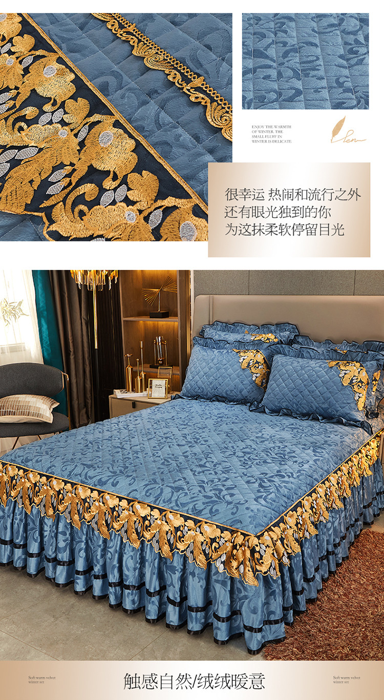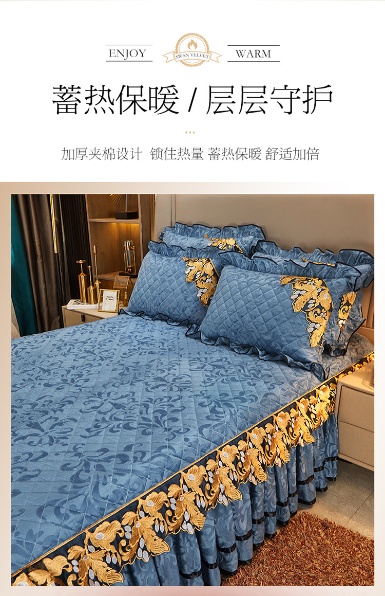 商品名称:网红馆2025新款天鹅绒夹棉单床裙 浅忆拾光-蔚蓝