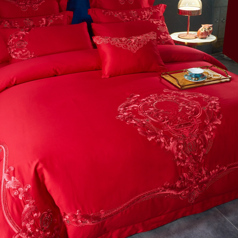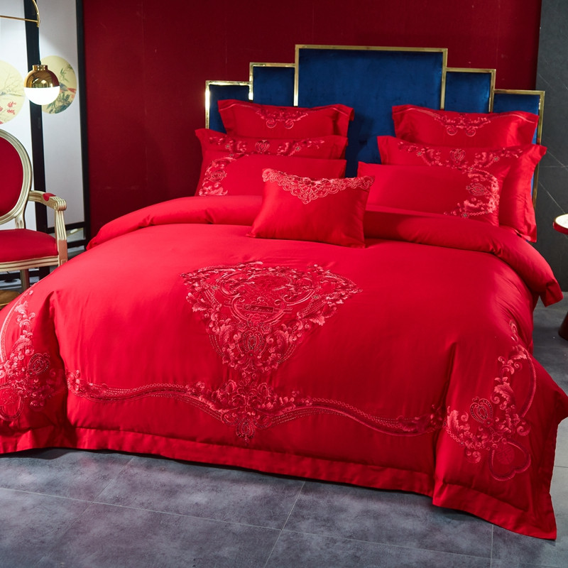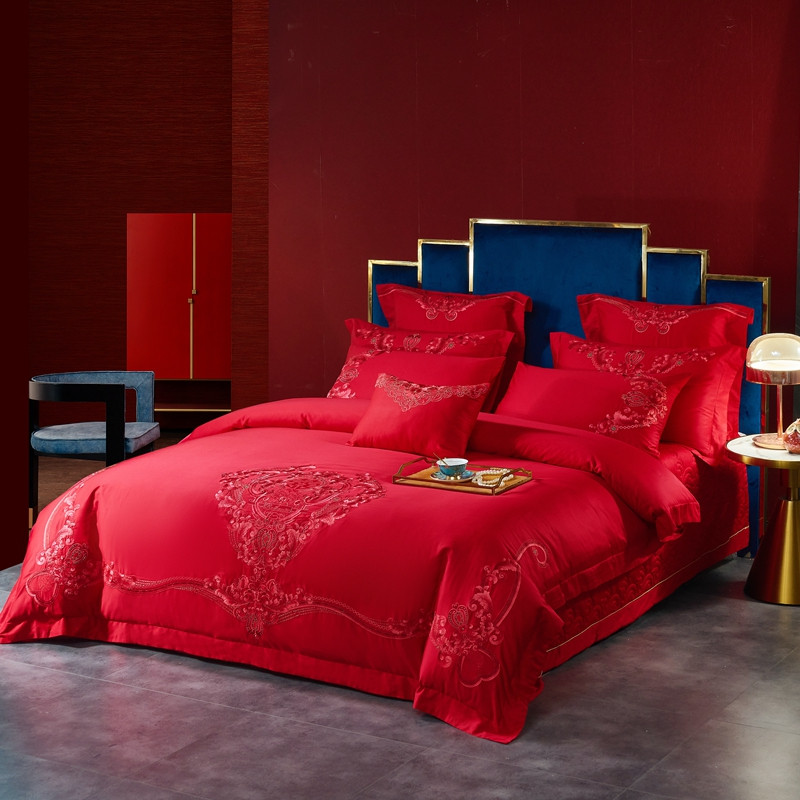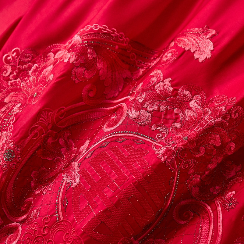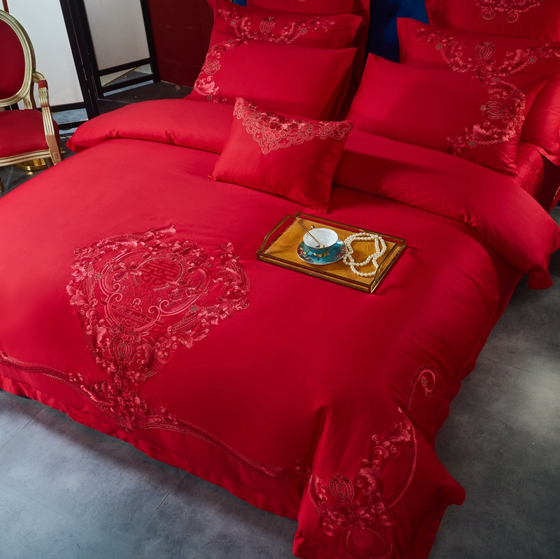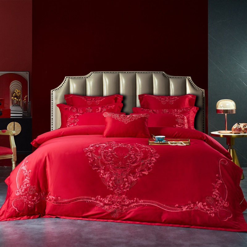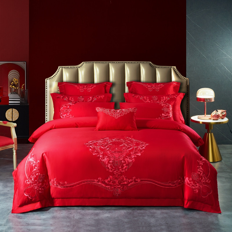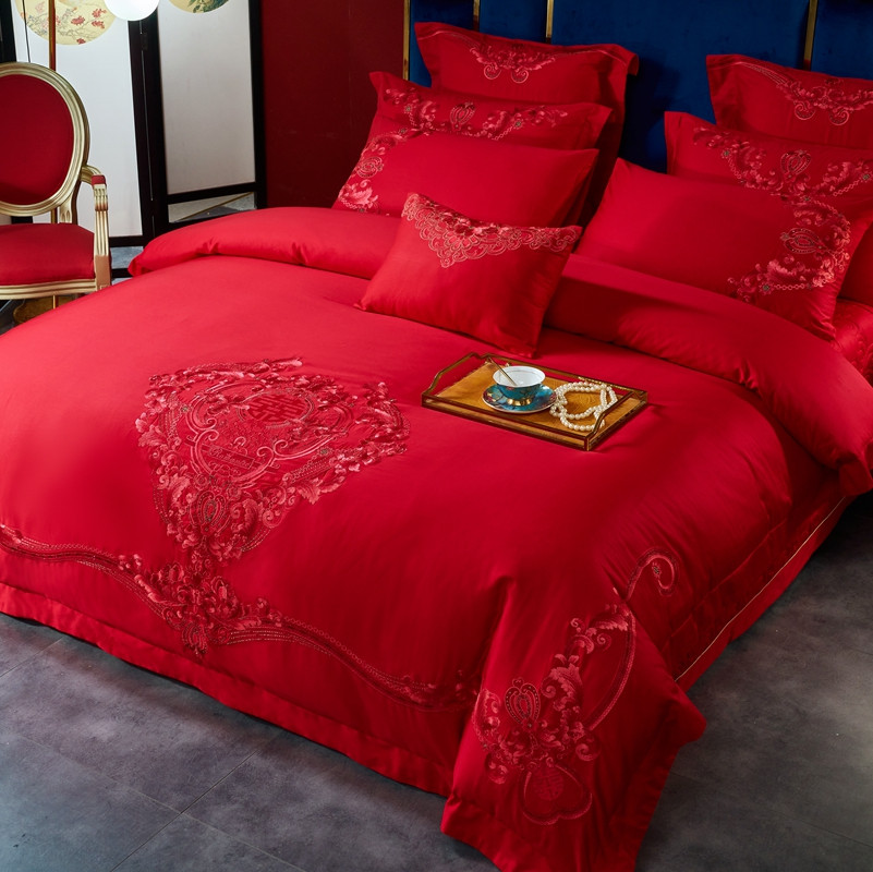 当前位置: 91家纺网 > 商品网购 > 床品套件 > 多件套 > 多件套 > 高大尚新款长绒棉AB版系列婚庆多件套淡雅风情红