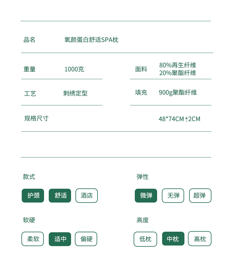 商品名称:2022新品刺绣氧颜蛋白SPA透气护颈椎枕芯安睡美容枕头