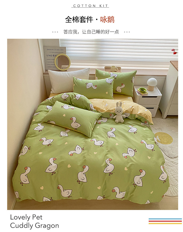 当前位置: 91家纺网 > 商品网购 > 床品套件 > 四件套 > 全棉普通四件套 > 麦伦家居 2022新款小清新卡通系列全棉斜纹四件套 咏鹅