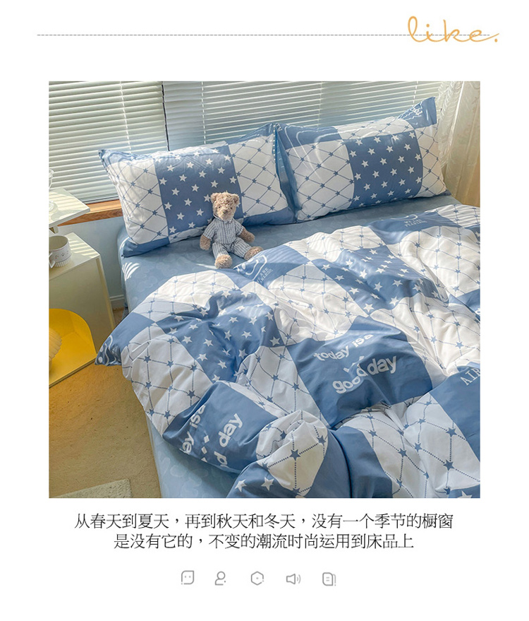 当前位置: 91家纺网 > 商品网购 > 床品套件 > 四件套 > 全棉普通四件套 > 寐居2022春季新款全棉四件套 时尚方格