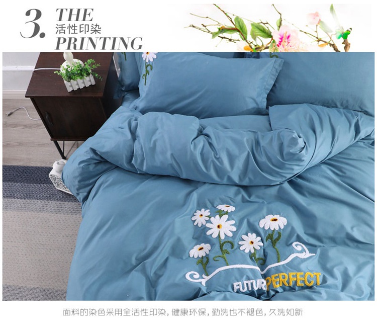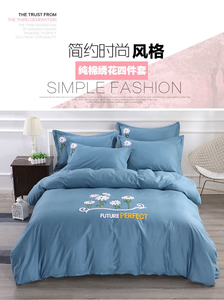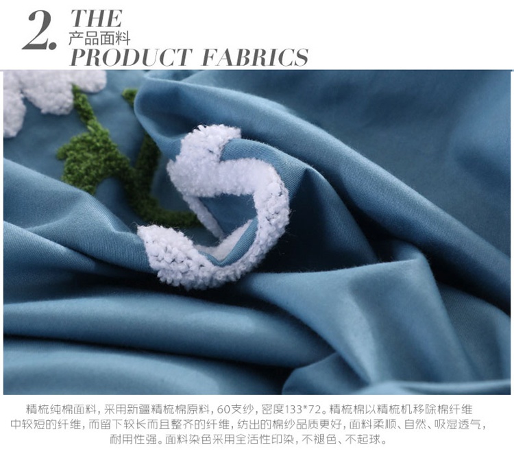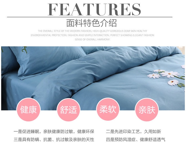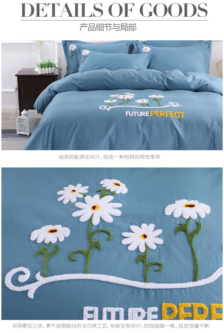 商品名称:2022晶缦全棉13372纯色毛巾绣绣花四件套 夏花绽放湖蓝