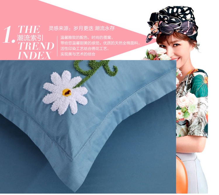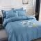 2022晶缦全棉13372纯色毛巾绣绣花四件套 夏花绽放湖蓝