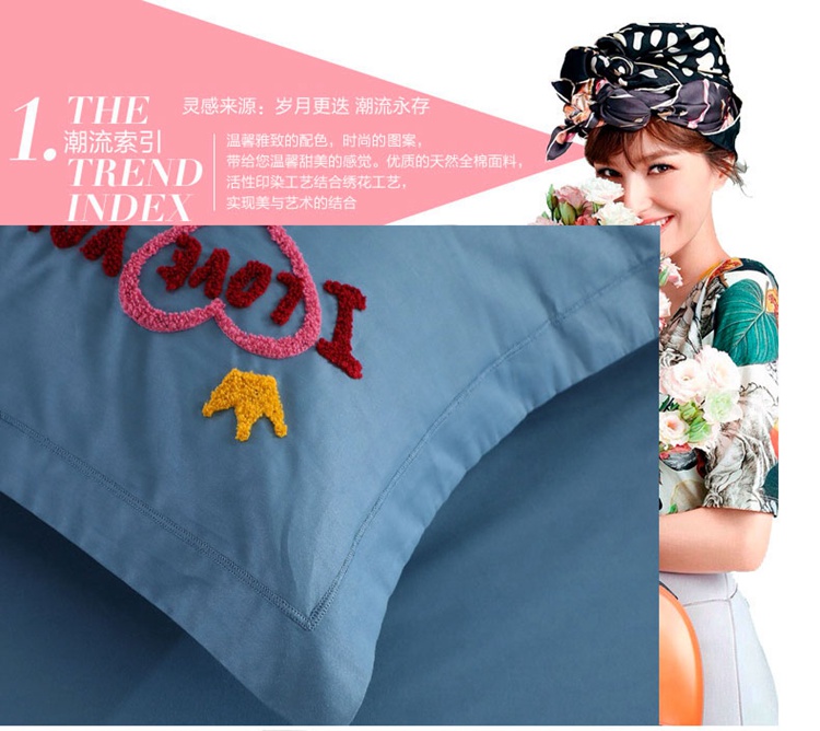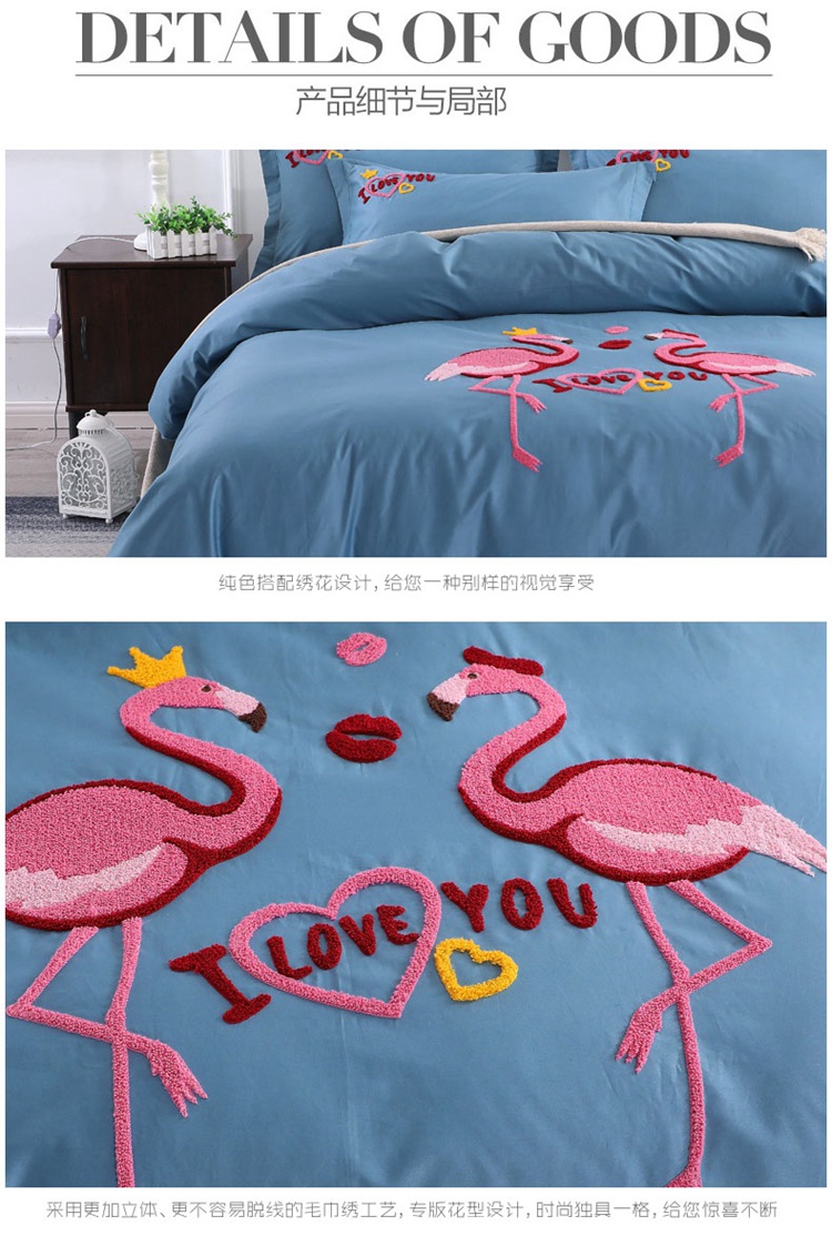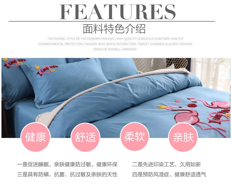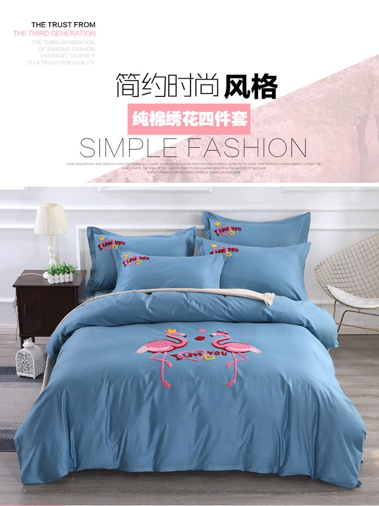 2022晶缦全棉13372纯色毛巾绣绣花四件套 幸福烈鸟湖蓝