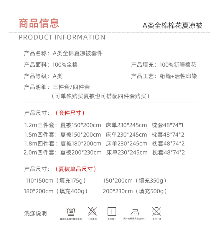 1.2三件套【150*200夏被+230*245床单+1个枕套】 | ¥108.00 |