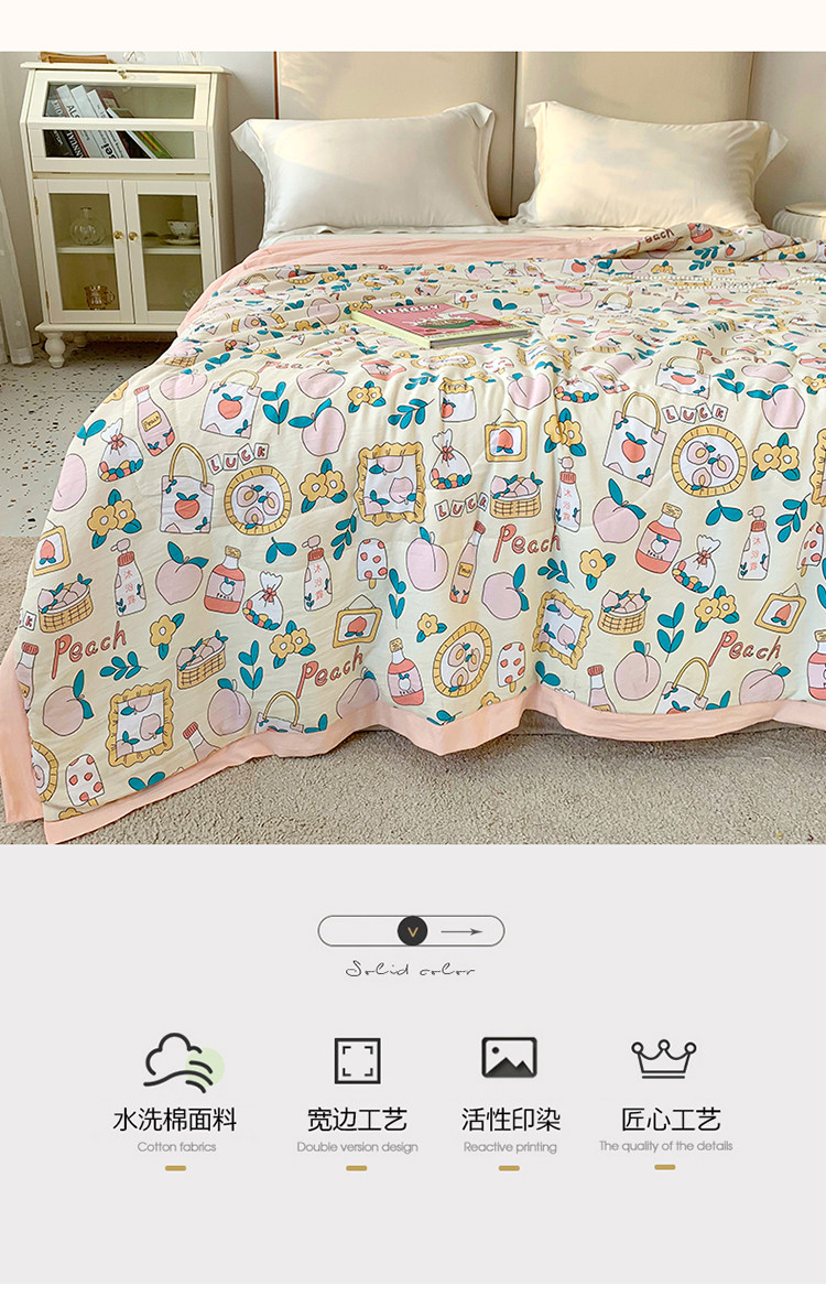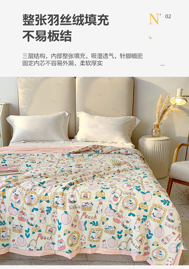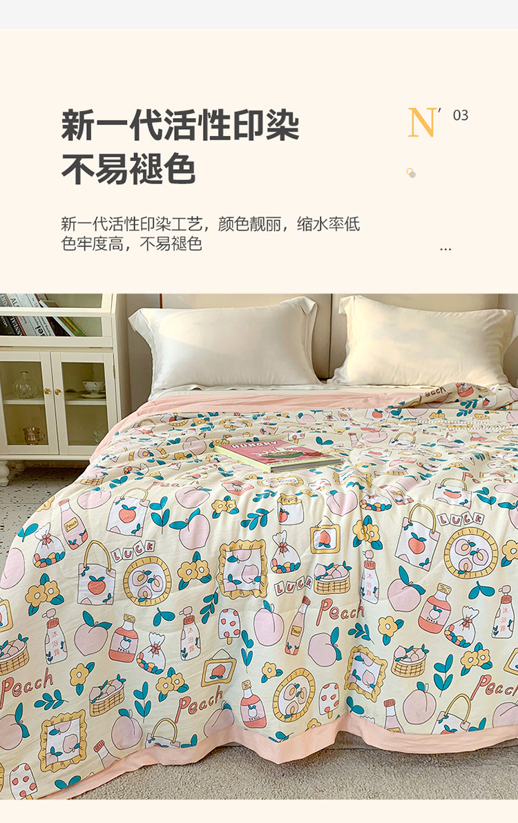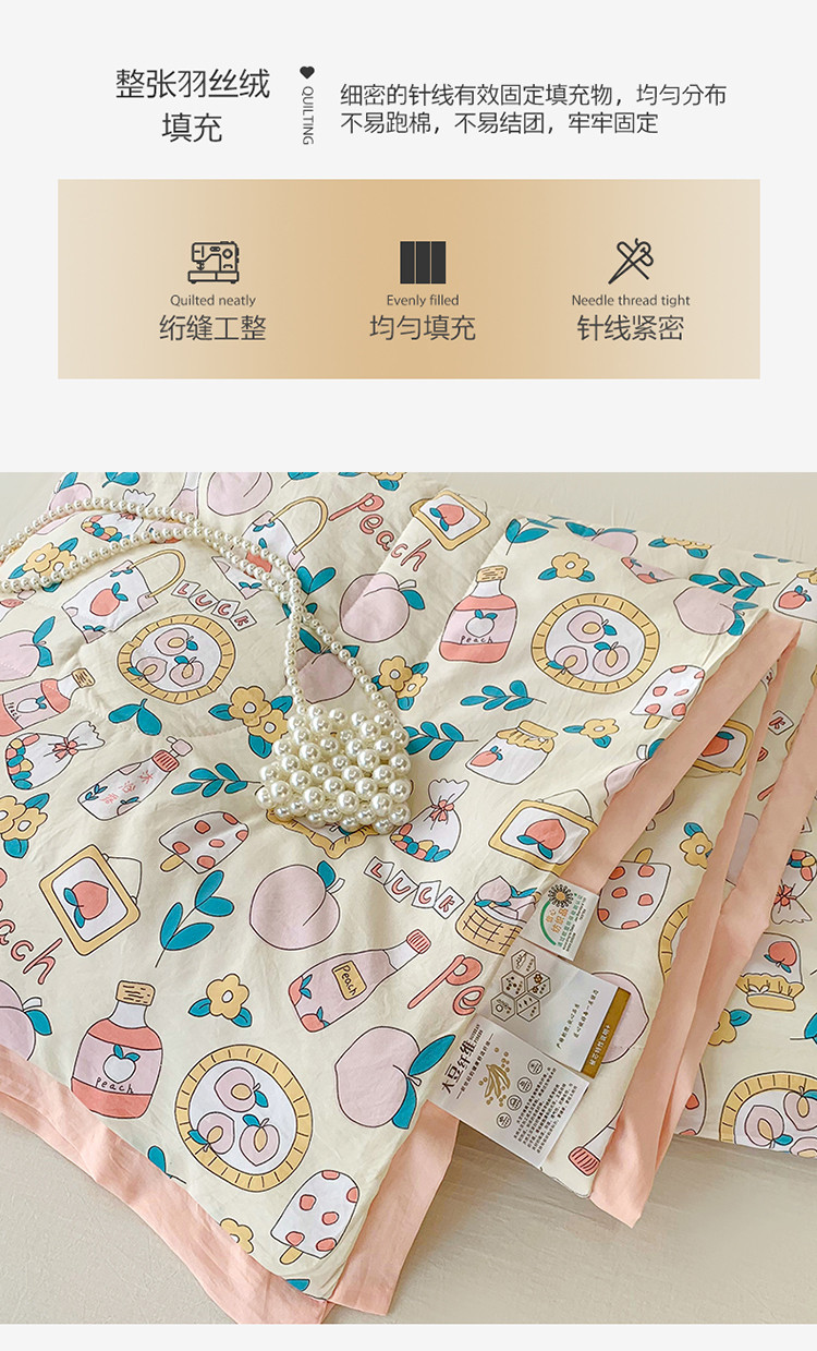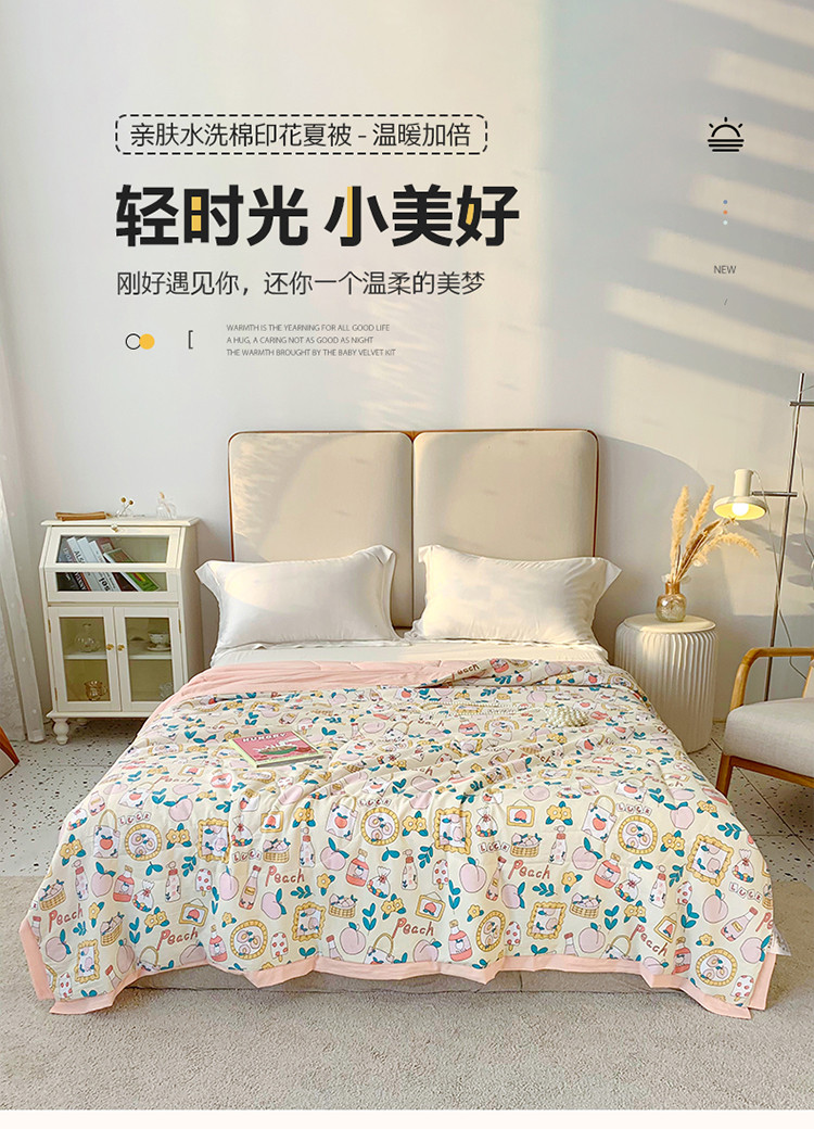 商品名称:澳洲羽 2024新款亲肤水洗棉印花夏被 屁桃粉