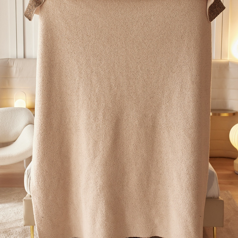安莱 设计师太阳花A类半边绒针织毯子沙发办公室午睡毯秋冬 风帆白