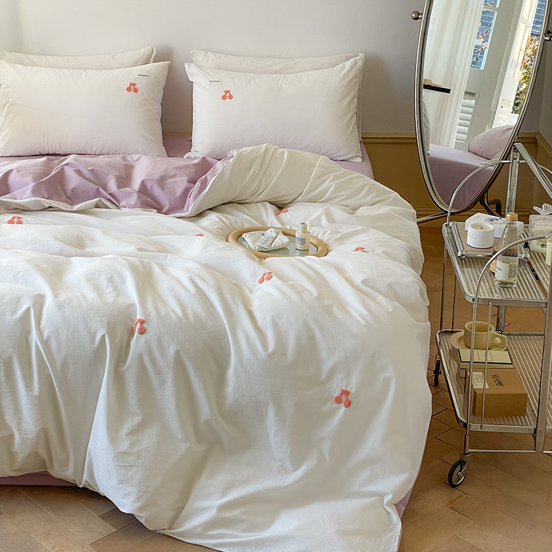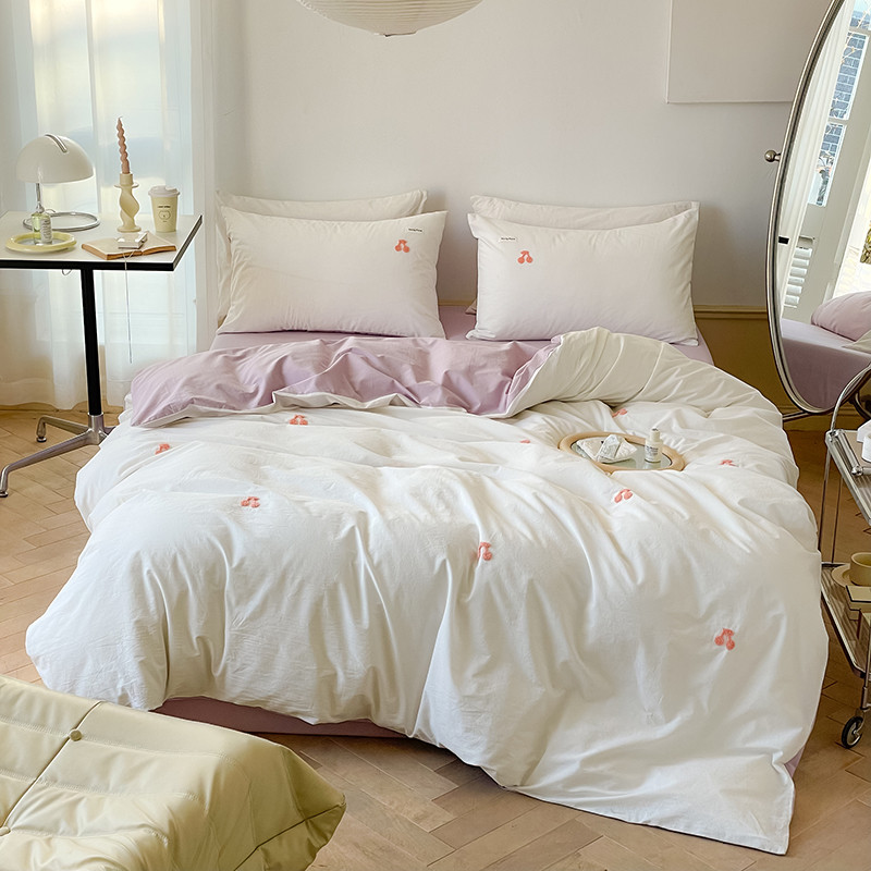 洋铭区 2022新款全棉小清新水洗棉刺绣系列 樱桃公主
