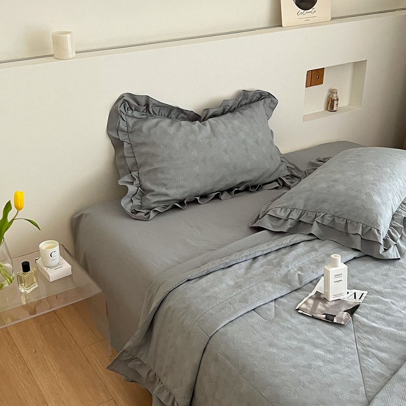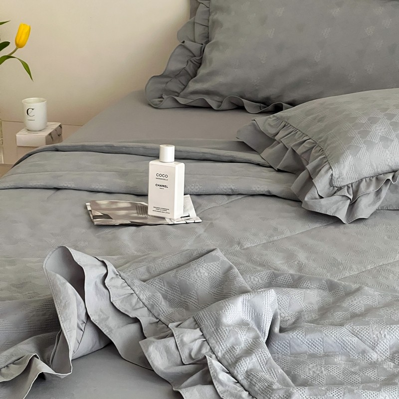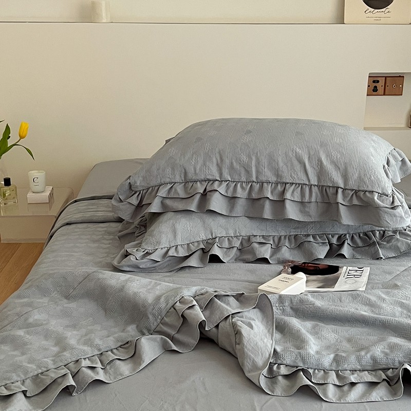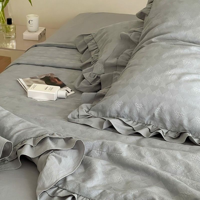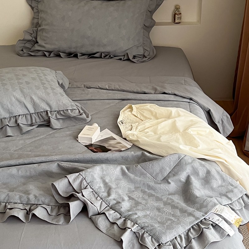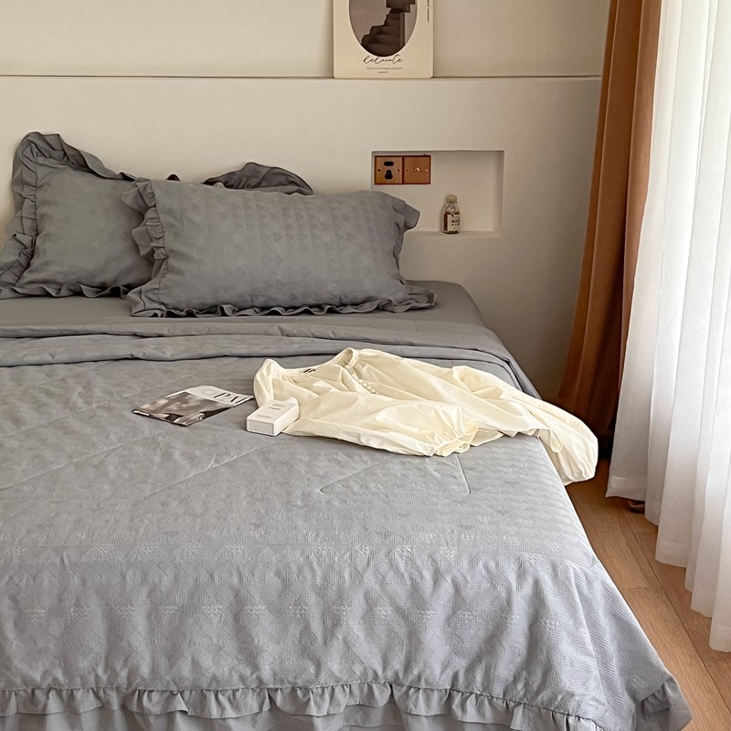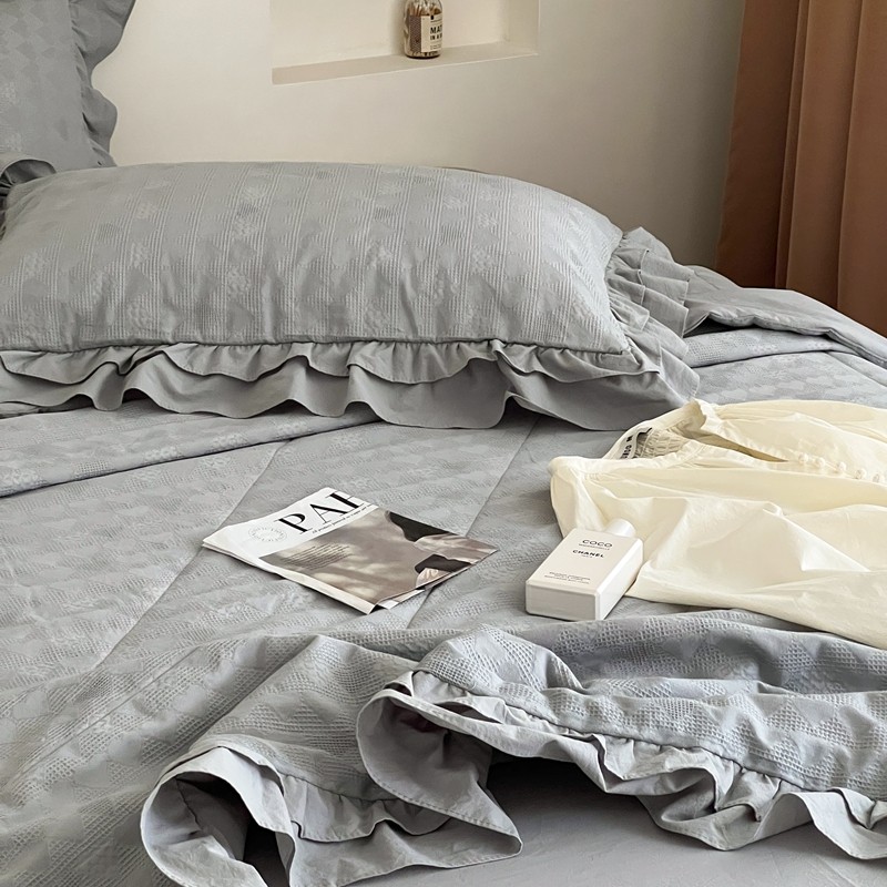 商品名称:昔可 2022新款60支水洗棉华夫格夏被 爱心雾霾蓝