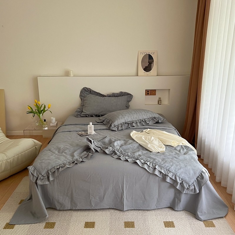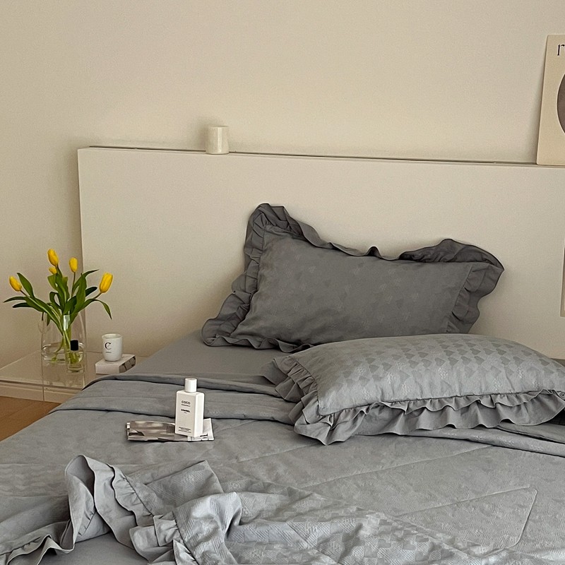 昔可 2022新款60支水洗棉华夫格夏被 爱心雾霾蓝
